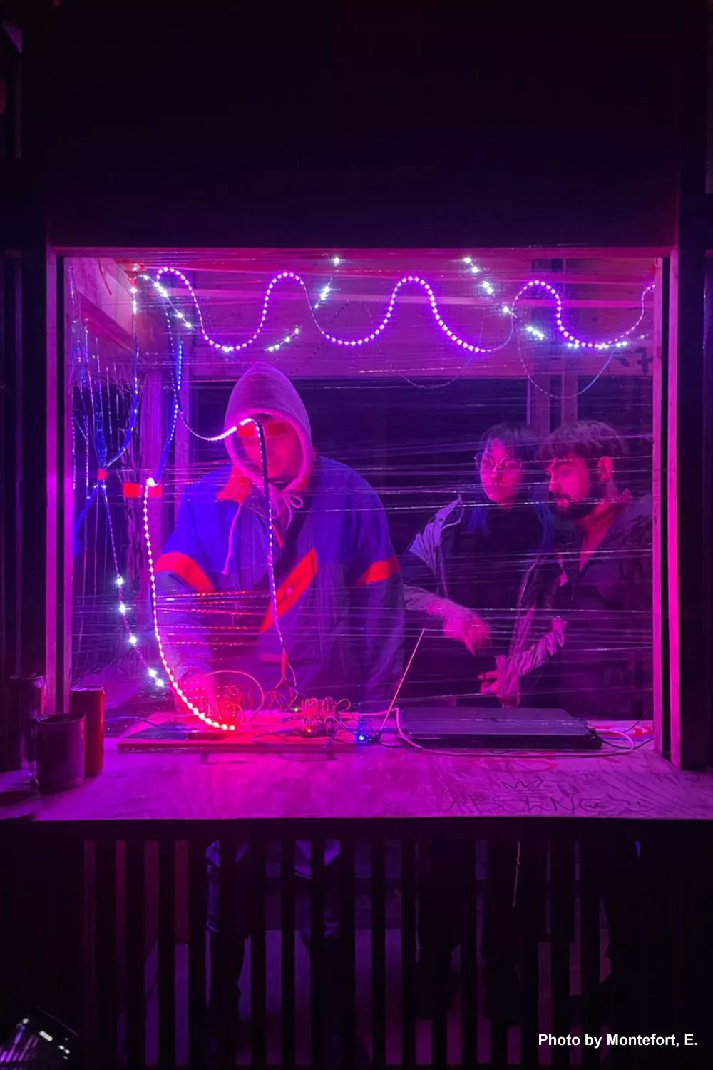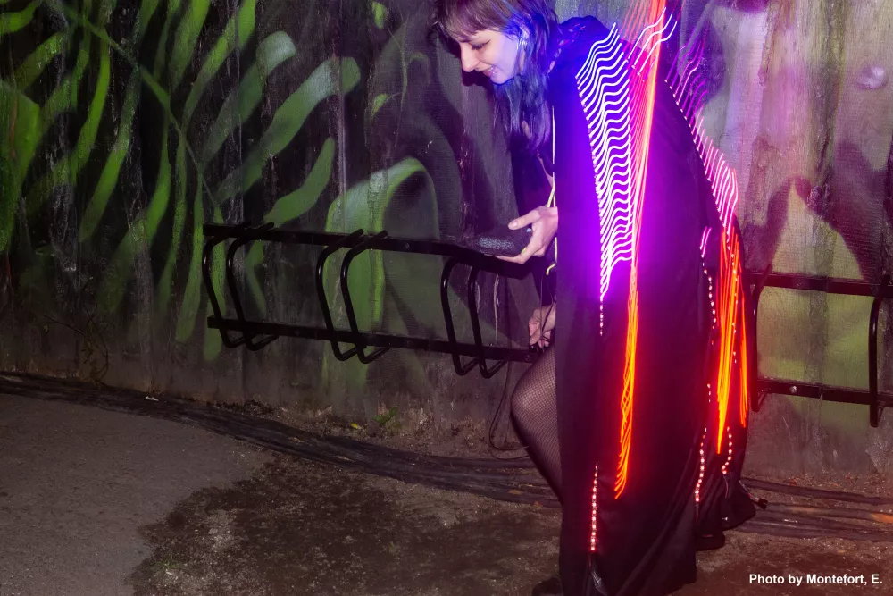 The project started as a simple idea: a cape that lit up in response to EMFs, turning the invisible into something you could wear. But as the idea grew, so did its possibilities. The cape became an immersive installation, where light and sound work together to create a deeper, shared experience. Now, visitors can explore the unseen networks that shape our urban lives in ways that feel both personal and communal.