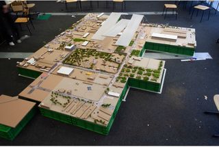 ...Vorbeischauen, Gespräche und Weiterbauen am Modell mit Gästen aus der Stadtverwaltung Leipzig, der Leipziger Stadtbau AG, ExpertInnen aus Wirtschaft, Biodiversität und städtischer Infrastruktur, sowie AkteurInnen aus dem Gewerbegebiet Neu-Lindenau: