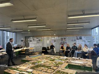 We had the pleasure of welcoming Kevin Vennemann and a group of his students from Scripps College in Claremont, California, to our chair. Their visit was part of a research trip to Berlin, Weimar, and Dessau within the framework of a seminar on the Bauhaus. After a brief tour of the main building, we gathered for a discussion supported by visual materials showcasing the projects and research themes of our chair. The exchange was lively and inspiring, as we explored intersections between our work and the students' diverse academic backgrounds, ranging from anthropology and business to history, politics, and the arts. We greatly enjoyed the engagement and curiosity of our visitors and look forward to continuing the dialogue in the future!