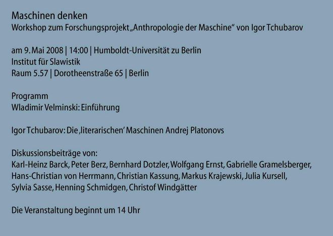 Eine Ausstellung im Foyer der Humboldt-Universität zu Berlin, 2. April - 1. Mai 2007, (konzipiert und kuratiert von Wladimir Velminski)