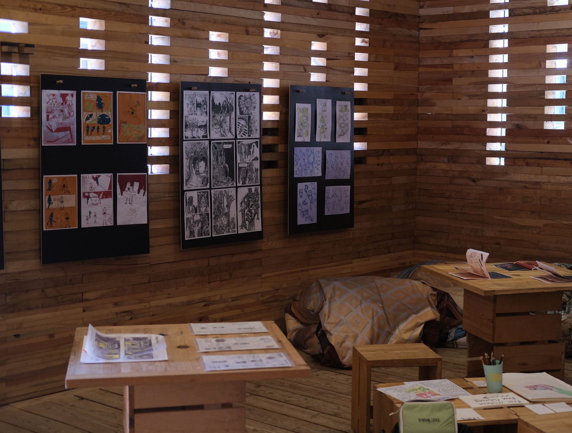 The exhibition during this year’s summaery also took place at a special place: The Co-Labor right in front of the Stadtschloss in Weimar. During the exhibition, the group showed the comics they produced during the semester. The exhibition shows what can be possible, if a group of motivated students works on a topic, they are truly invested in. It also produced very positive resonance in the diverse audience, that, thanks to the location, was not necessarily part of the Bauhaus Universität.