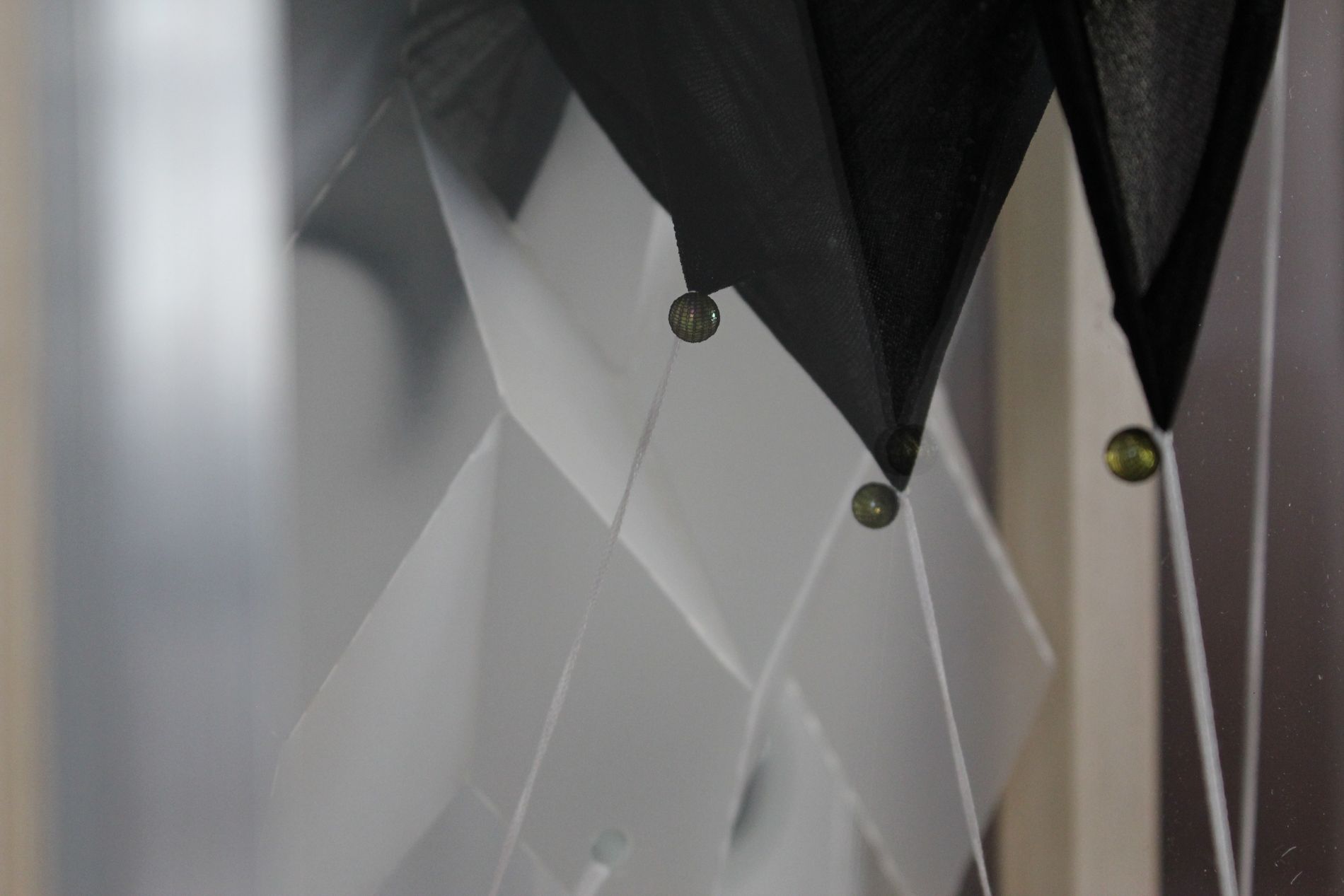 Der Bestandsraum hat die Abmessungen von 1,50 x 3,7 Metern. Ein an der Decke installiertes Schienensystem nimmt drei verschiebbare Wände auf, welche die Funktionen «Schlafen», «Arbeiten und Verstauen» sowie «Beleuchtung und Sichtschutz» aufnehmen. Das System erlaubt das leichtgängige Verschieben ohne Belastung des vorhandenen, unebenen Dielenbodens. Befinden sich alle Wände in ihrer Parkposition, ist nahezu der gesamte Raum frei bespielbar.