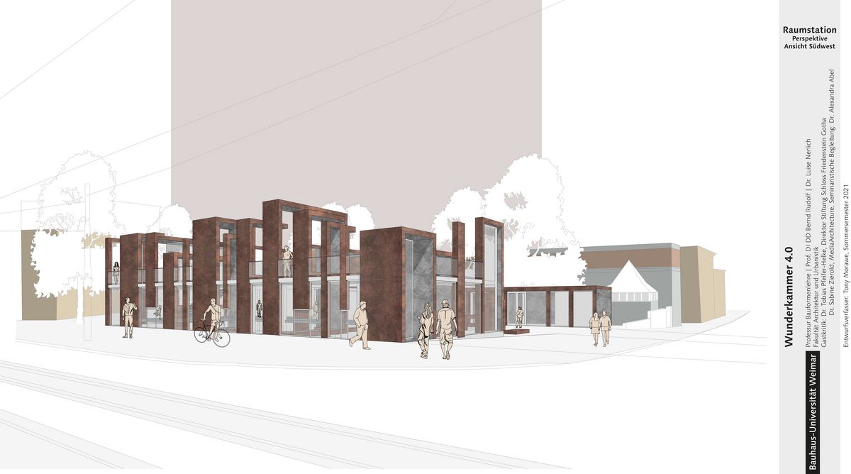 Betreut von den Professuren Bauformenlehre und Darstellungsmethodik an der Fakultät Architektur und Urbanistik haben sich im Sommersemester 2021 Bachelor- und Masterstudierende der Architektur zeitgemäßen Ausstellungs- und Kommunikationsarchitekturen für den reichen Sammlungsbestand des »Barocken Universum Gotha« gewidmet. Die Betreuung erfolgte durch Prof. Bernd Rudolf, Dr.-Ing. Luise Nerlich und Dr. Sabine Zierold, Begleitseminare wurden von Prof. Andreas Kästner und Dr. Alexandra Abel durchgeführt, als Partner und Gastkritiker war der Direktor der Stiftung Schloss Friedenstein Gotha, Dr. Pfeifer-Helke beteiligt.