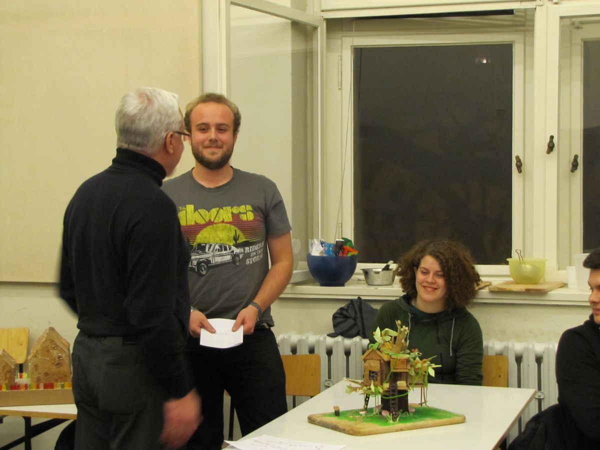 Mit den Worten »der größte Preis geht an alle« verabschiedete Prof. Dr.-Ing. Barbara Schönig der Fakultät Architektur alle Beteiligten zum gemeinsamen Glühweintrinken und Kuchenessen. Sie sagte, dass jedes Haus einzigartig geworden sei, und der Spaß im Vordergrund stünde. Spaß hatten auf jeden Fall alle.