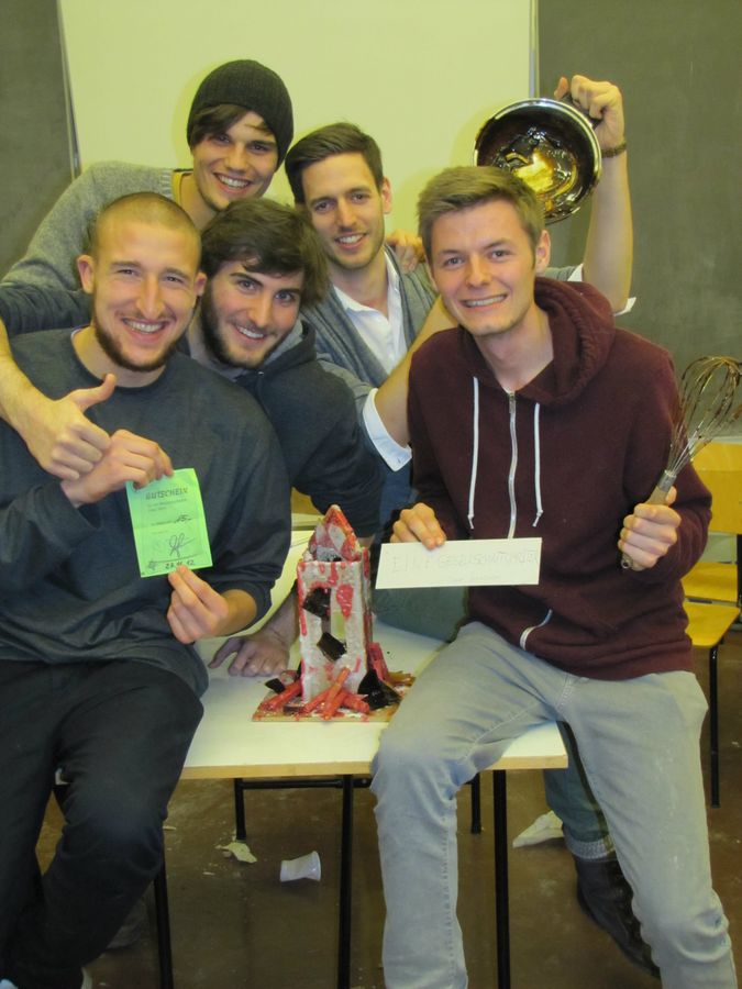 Die Lebkuchentafeln für den Rohbau wurden gestellt, doch das Material für den Ausbau und die Dekoration musste von allen Teams selbst mitgebracht werden. Traumhäuser, historische Gebäude oder Skulpturen – alles war erlaubt. Bedingung war, dass die Gebilde originell und alle verwendeten Materialien essbar sind. Die Grundkonstruktion musste aus Lebkuchen bestehen und auf ein Mensabrett passen.