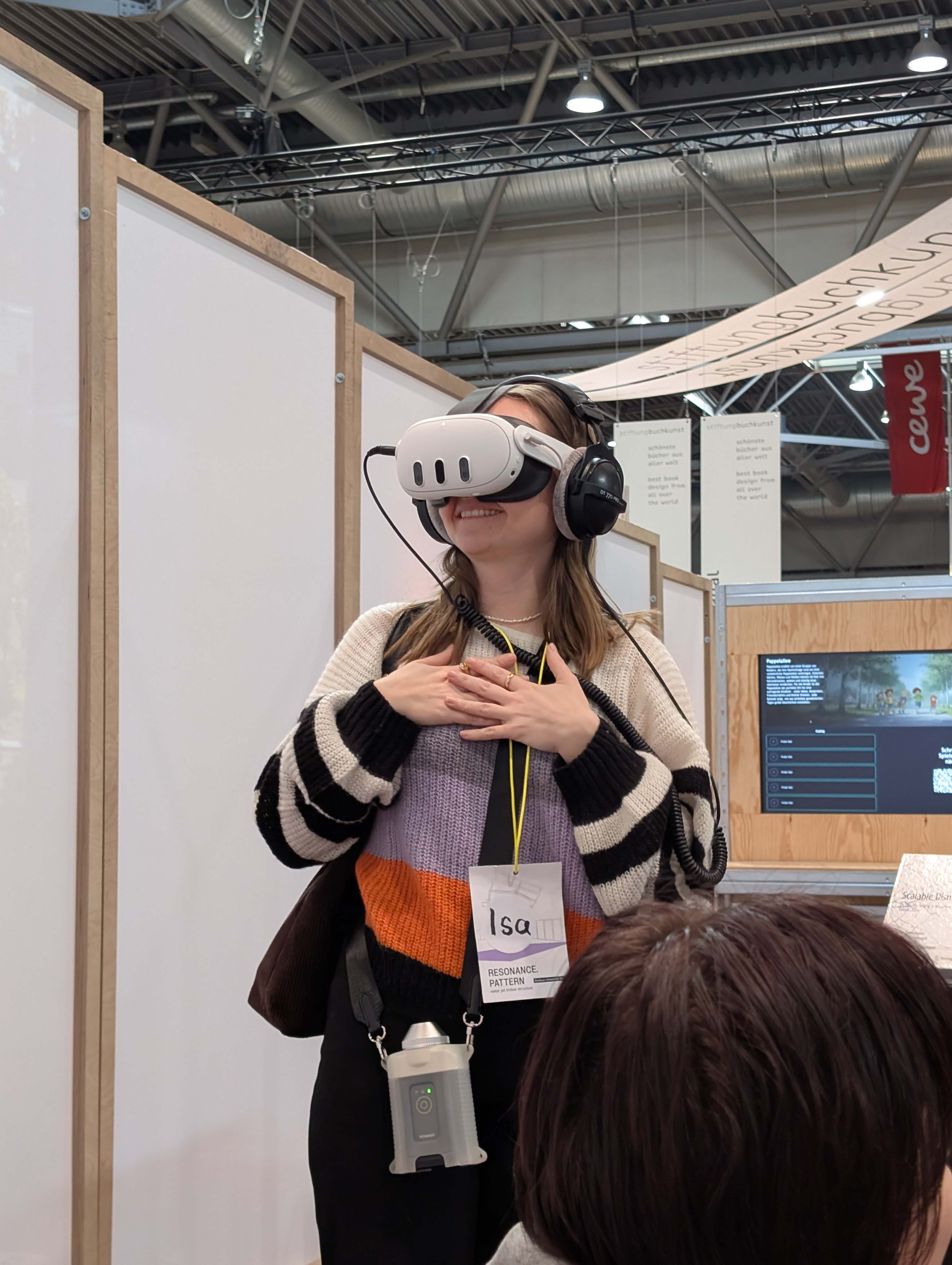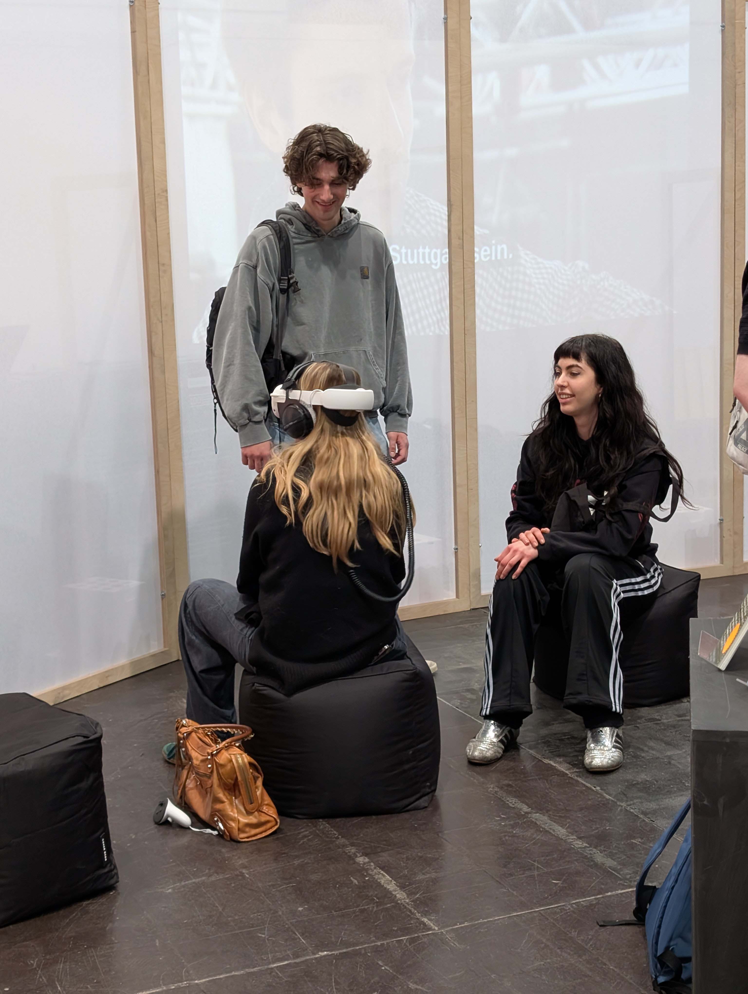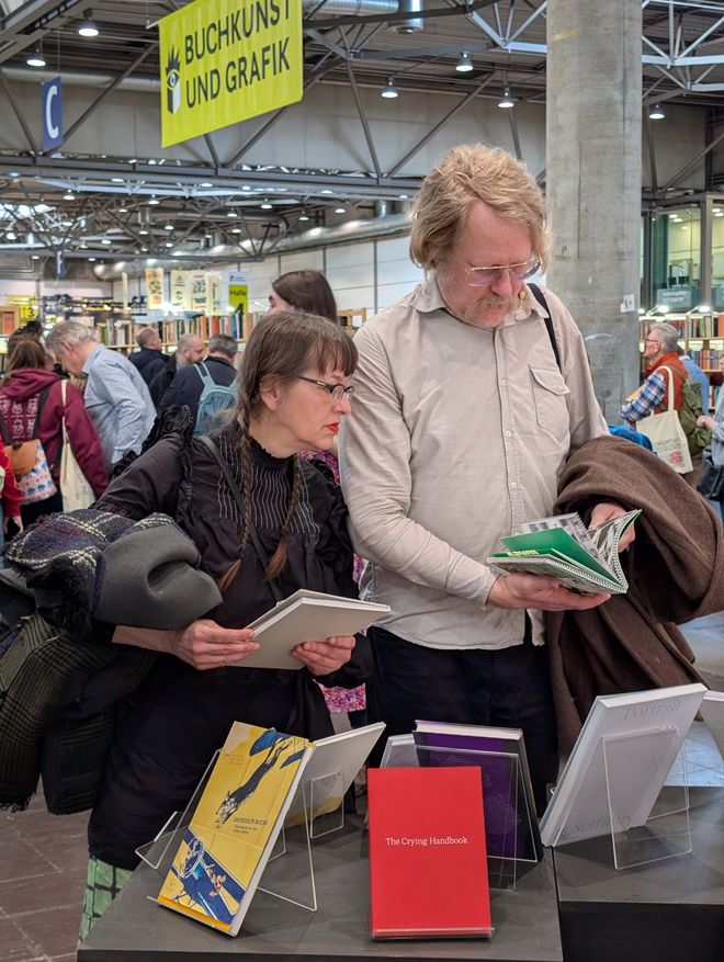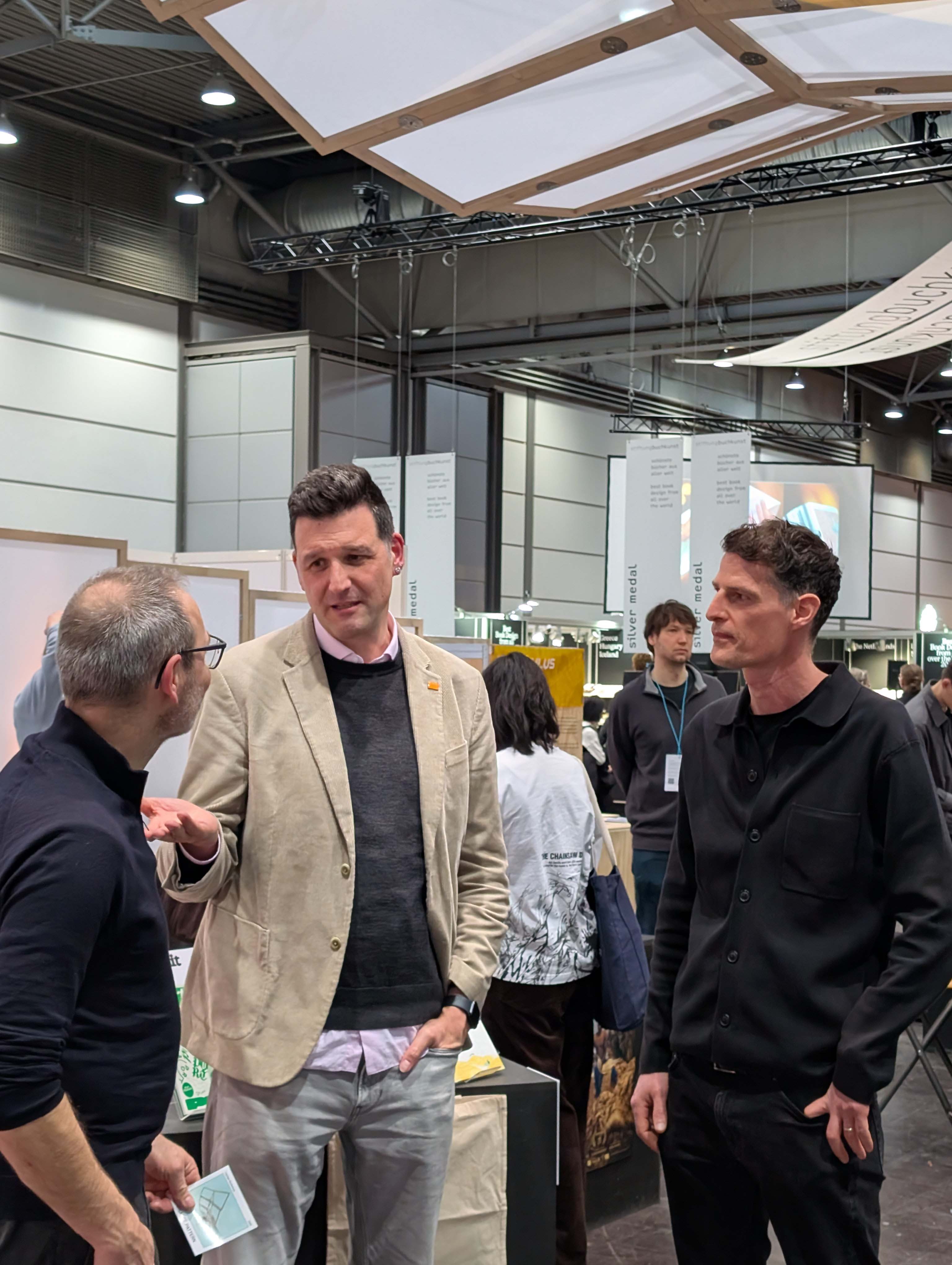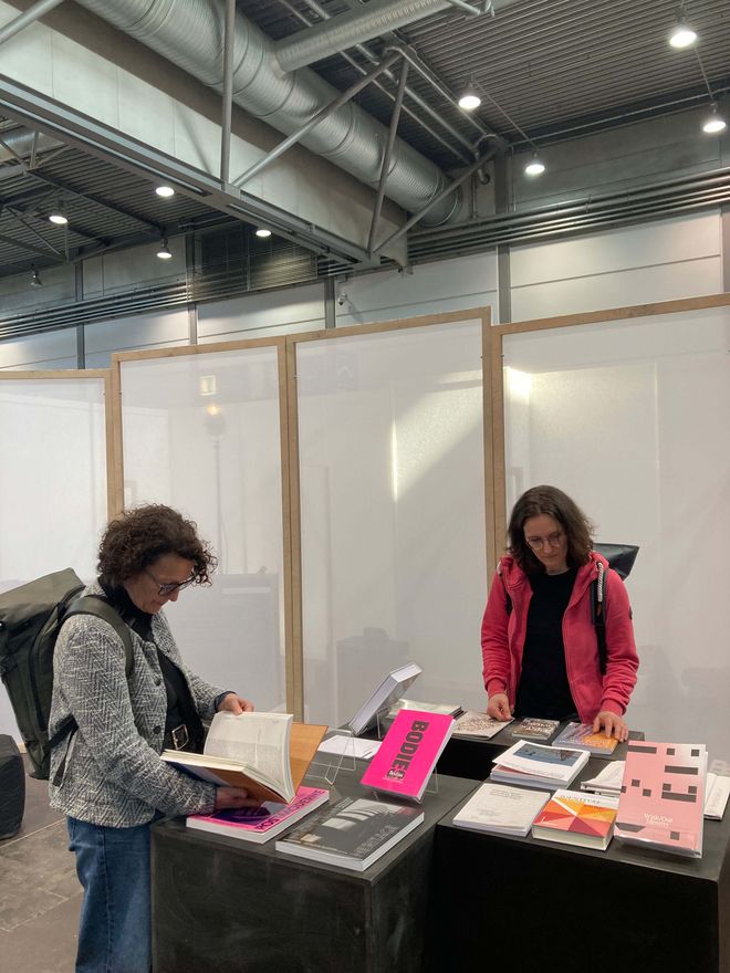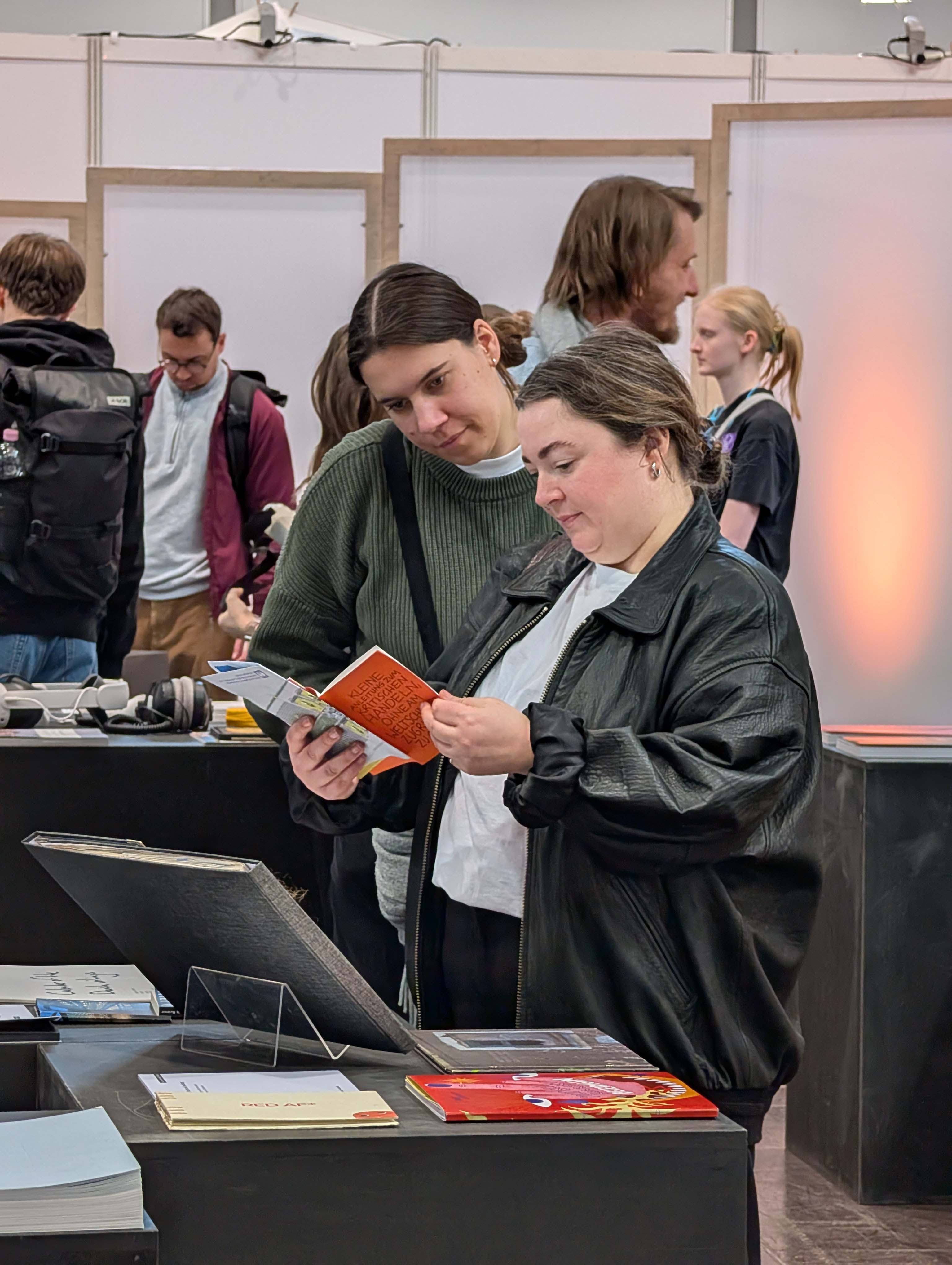 Die schwebende Dachkonstruktion bildete den Rahmen für die diesjährige Ausstellungsfläche der Universität, welche sich in bester Gesellschaft direkt neben den »schönsten Büchern der Welt« befand und über die gesamte Messezeit immer wieder interessiertes Publikum anlockte. Der Andrang war insgesamt riesig, die Messe vermeldete für 2026 einen Besucherrekord von rund 300.000 Menschen. Das Publikum? Eine Mischung aus Studieninteressierten, Buchliebhabern, Kunst-Affinen bis hin zu Alumni der Bauhaus-Universität Weimar.