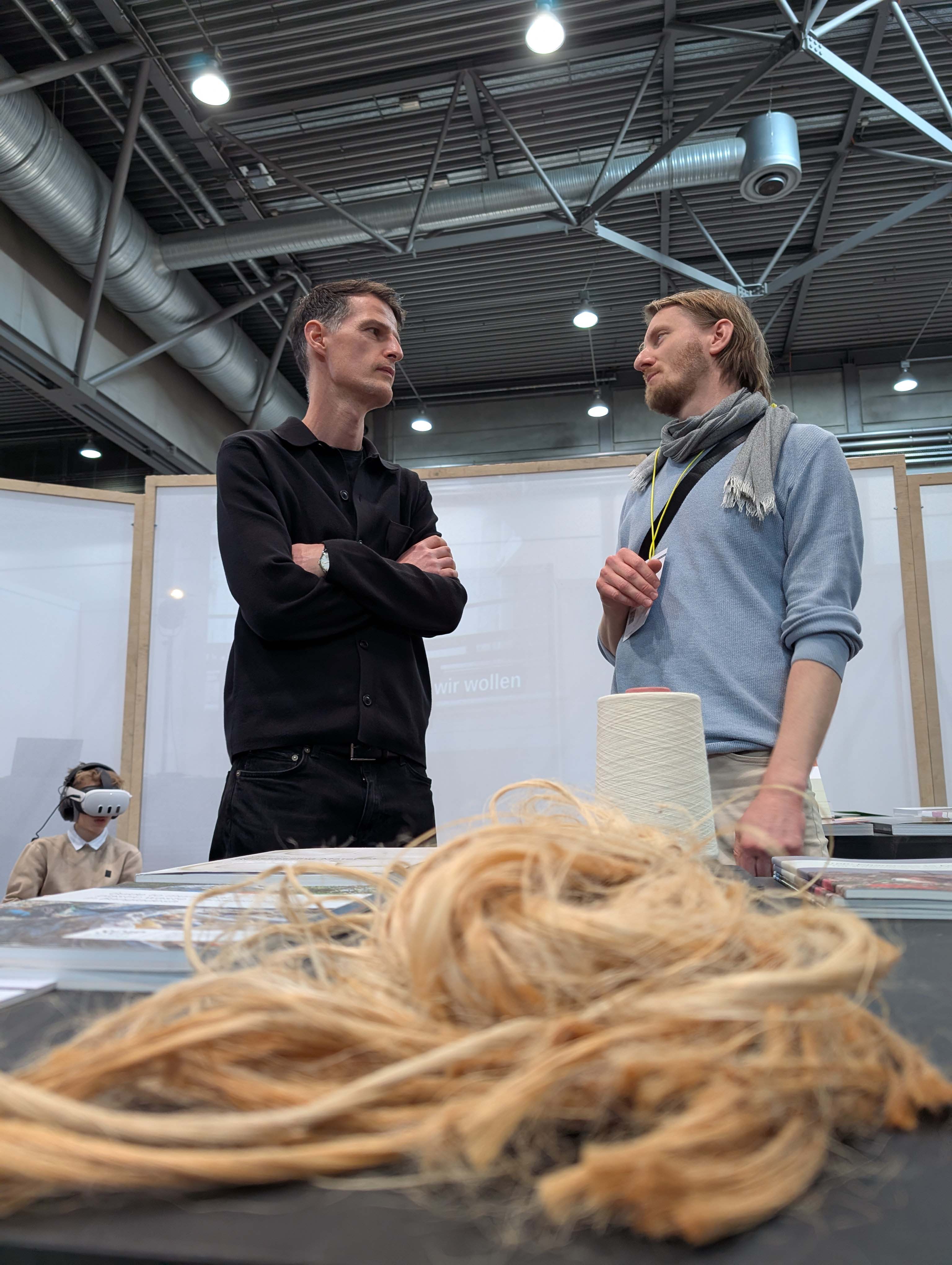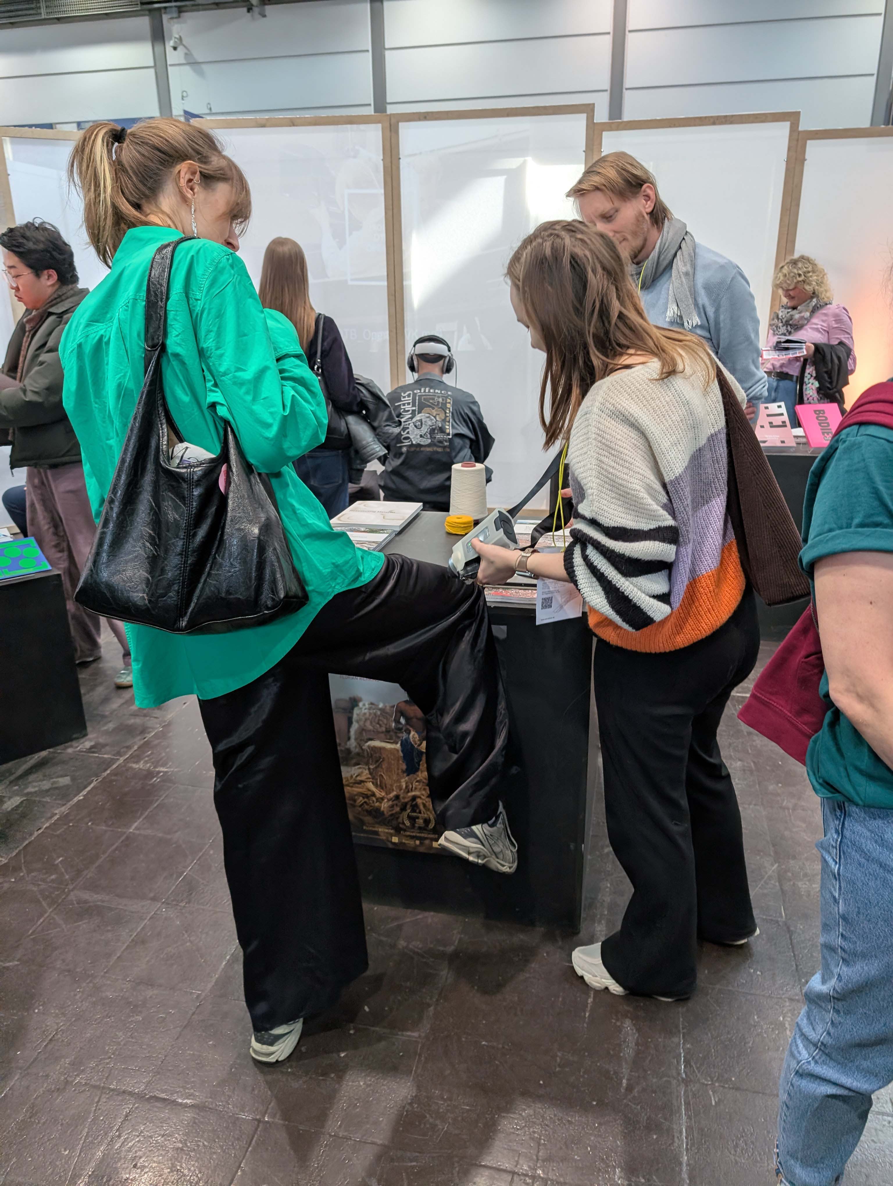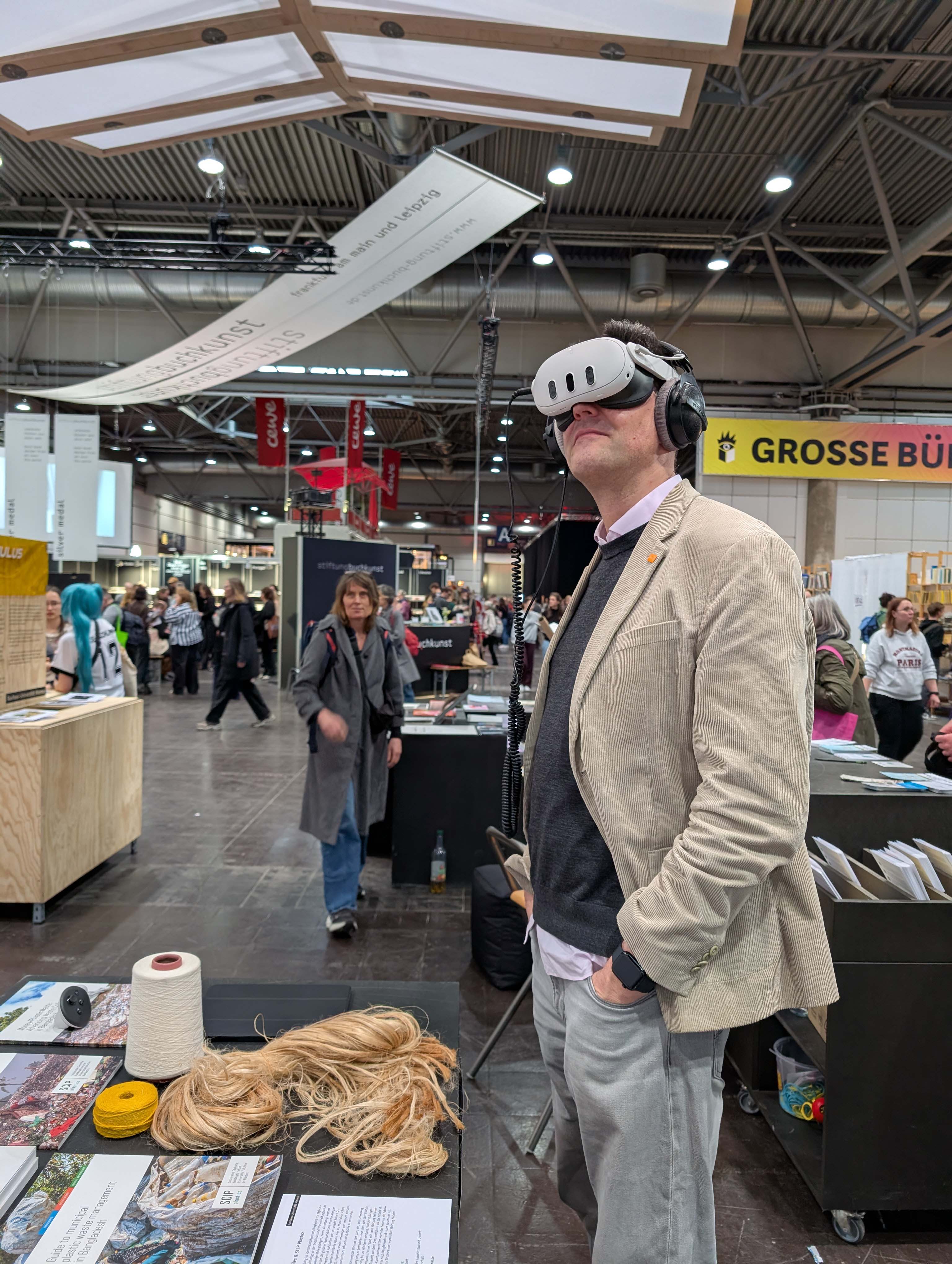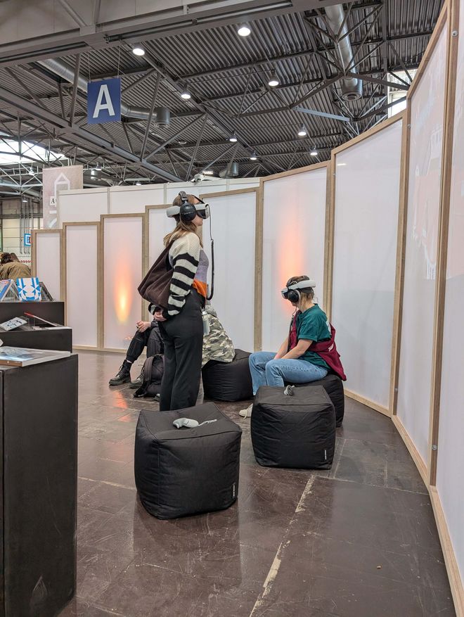 Mit dabei war auch eine VR-Simulation aus dem Fachbereich Umweltingenieurwissenschaften, welche die Gäste nach Bangladesch in eine Jute-Fabrik entführte. Der Gesprächsöffner für das Thema Stoffkreisläufe und nachhaltige Textilien, welches u.a. im Rahmen des Forschungsprojektes »Scip Plastics« ergründet wurden. Auch die jüngst veröffentlichte Publikation des »Bauhaus Energy Hub« lag auf dem Messestand aus und zeigte beispielhaft, wie Entwurf, nachhaltiges Bauen, innovative Energiekonzepte und ressourcenschonende Materialien praktisch zusammengeführt werden können. Ergänzend standen die Bauhaus.Botschafter*innen sowie Vertreter*innen der Studienberatung für Fragen bereit und führten immer wieder Gespräche mit Interessierten.