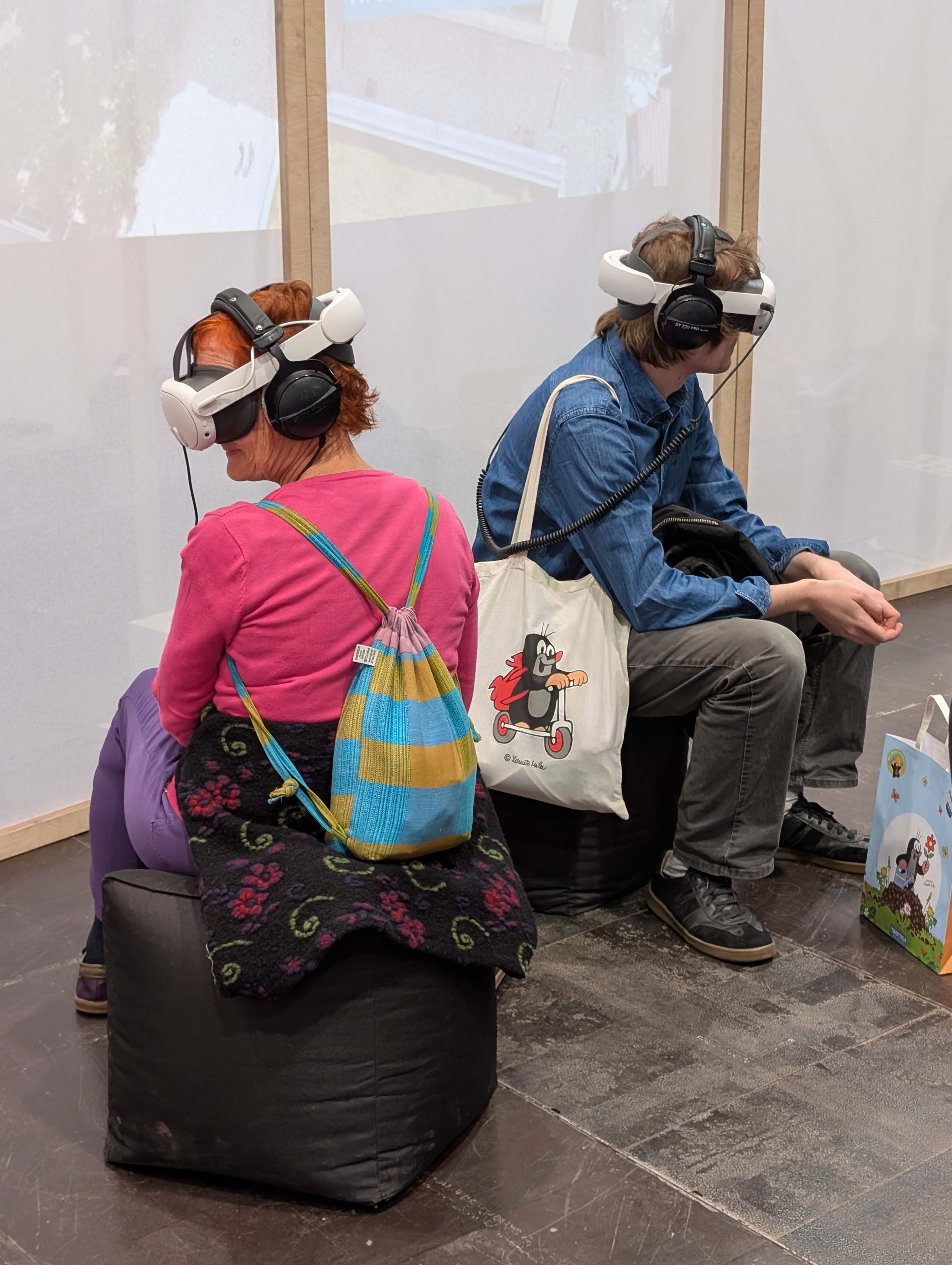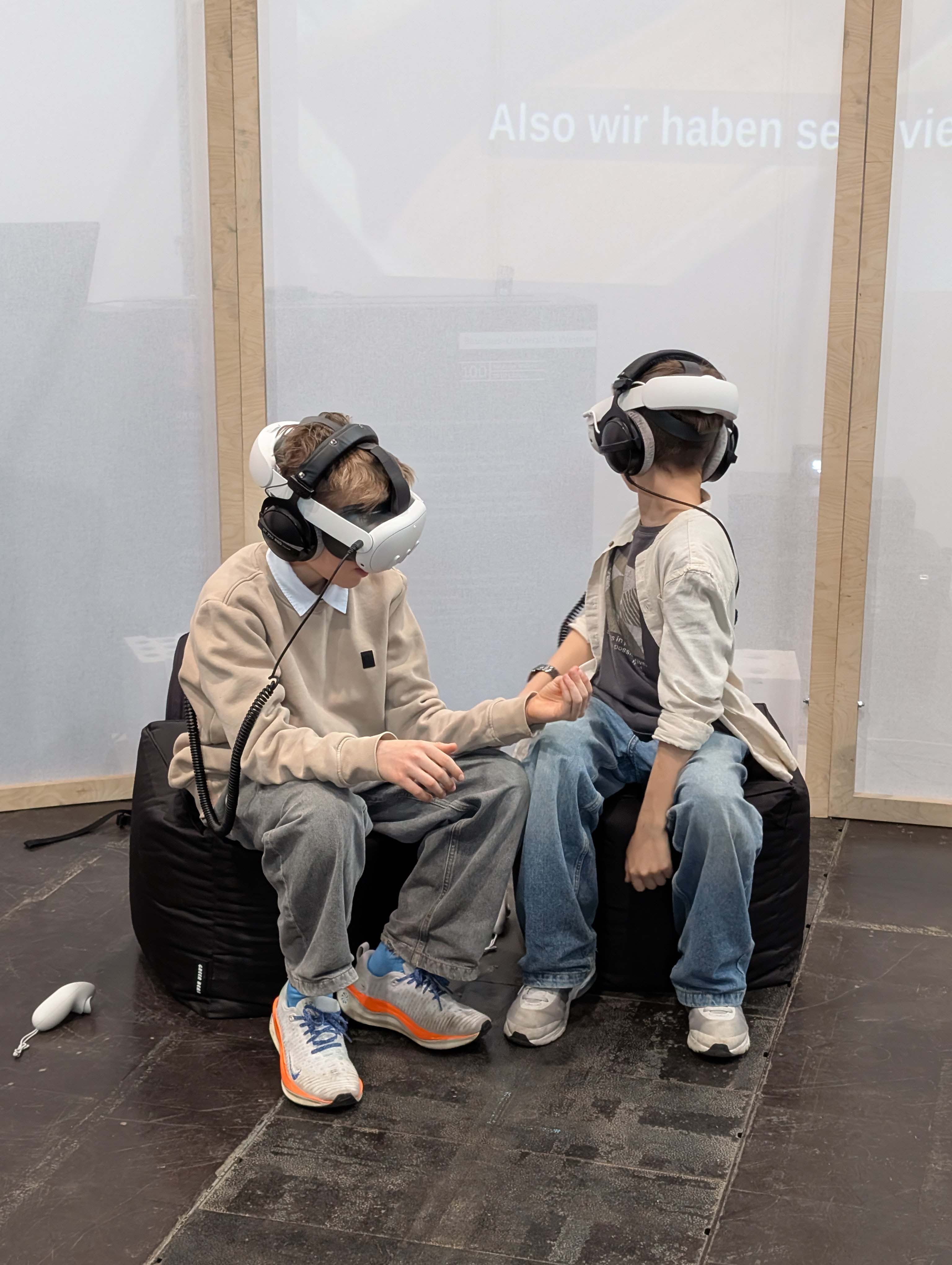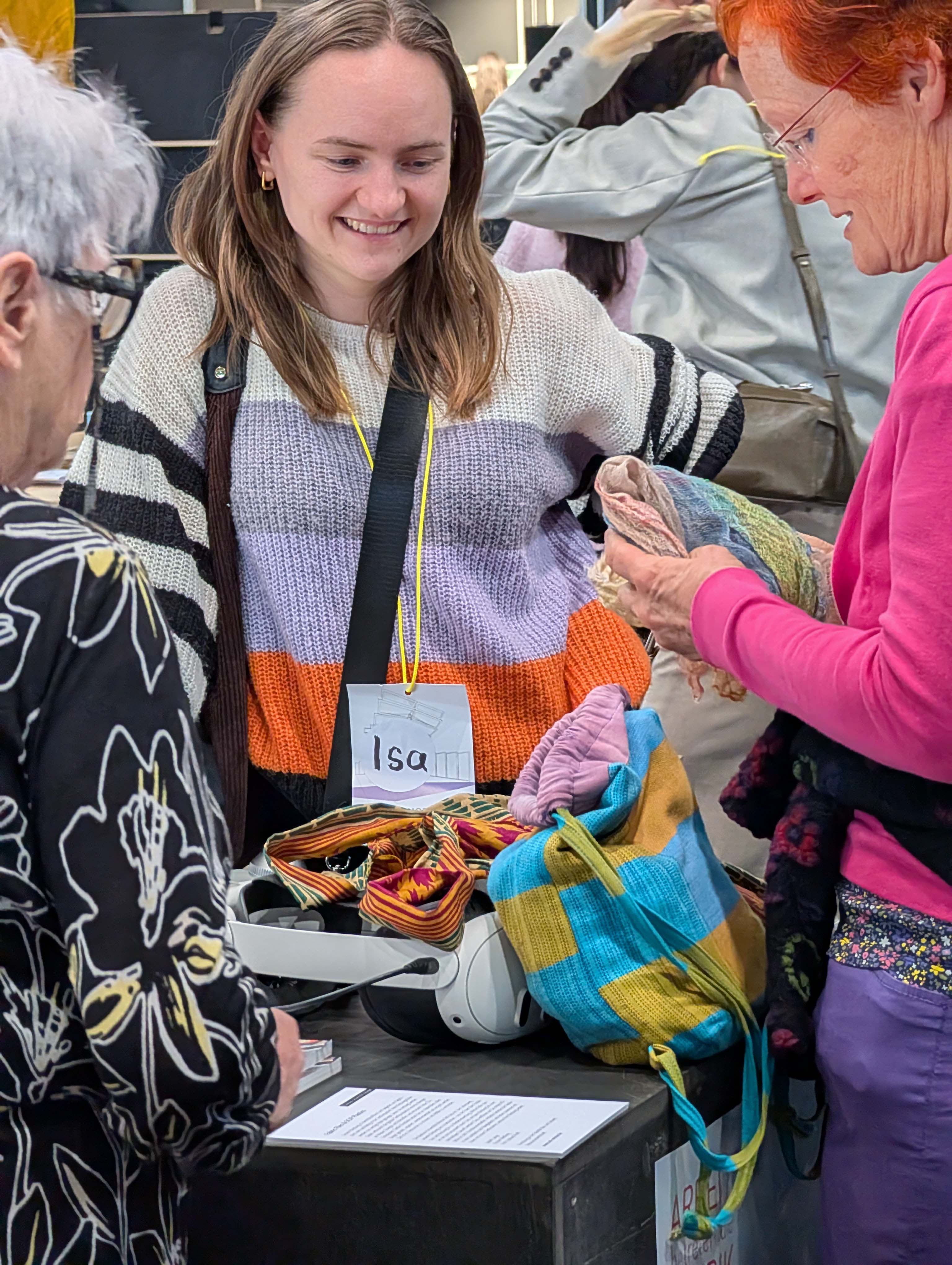 Mit dabei war auch eine VR-Simulation aus dem Fachbereich Umweltingenieurwissenschaften, welche die Gäste nach Bangladesch in eine Jute-Fabrik entführte. Der Gesprächsöffner für das Thema Stoffkreisläufe und nachhaltige Textilien, welches u.a. im Rahmen des Forschungsprojektes »Scip Plastics« ergründet wurden. Auch die jüngst veröffentlichte Publikation des »Bauhaus Energy Hub« lag auf dem Messestand aus und zeigte beispielhaft, wie Entwurf, nachhaltiges Bauen, innovative Energiekonzepte und ressourcenschonende Materialien praktisch zusammengeführt werden können. Ergänzend standen die Bauhaus.Botschafter*innen sowie Vertreter*innen der Studienberatung für Fragen bereit und führten immer wieder Gespräche mit Interessierten.