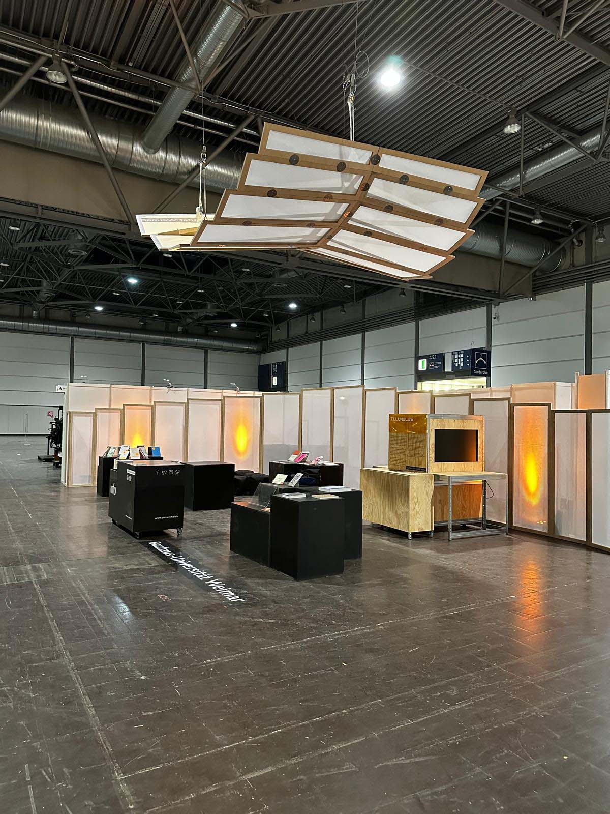 Vom 19. bis 22. März 2026 präsentierte sich die Bauhaus-Universität Weimar in der Halle 5 auf der Buchmesse in Leipzig. Auf 60 qm Standfläche realisierte die Universität ein experimentelles Ausstellungskonzept im Kontext von Typografie, Raum, Struktur, Material, Licht und Inszenierung. Der Messeauftritt »RESONANCE.PATTERN« entstand in einem studentischen, interdisziplinären Bauhaus.Modul unter Leitung von Prof. Dr. Michael Herrmann und Torsten Müller vom Lehrstuhl Konstruktives Entwerfen und Tragwerkslehre.