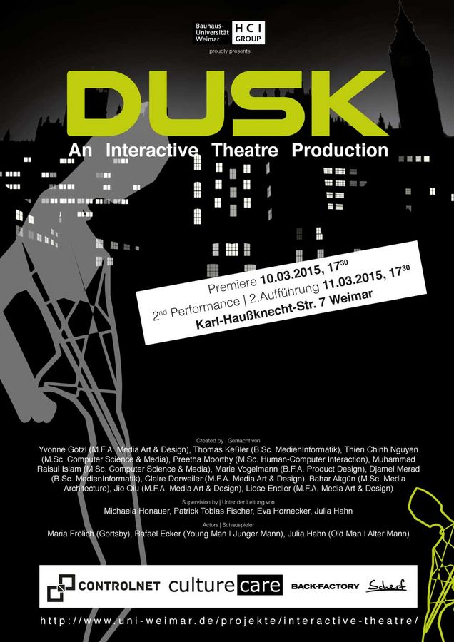 Im interdisziplinären Projekt des Studiengangs »Human Computer Interaction« haben Studierende der Fakultäten Medien, Gestaltung sowie Architektur und Urbanistik gemeinsam ein interaktives Theaterstück konzipiert, gestaltet und umgesetzt. Die Premiere findet am Dienstag, 10. März 2015 um 17.30 Uhr statt.