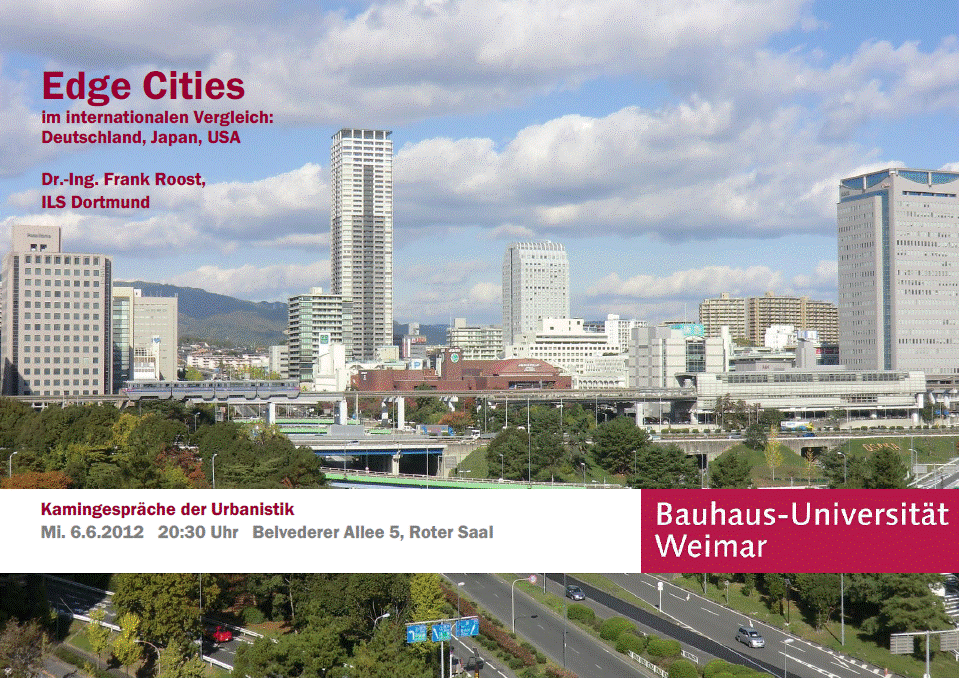 Edge Cities als neuere Form der Suburbanisierung - Agglomerationen von Dienstleistungs-, Gewerbe- und Wohnstandorten ohne Anbindung an vorhandene Ortskerne - sind keineswegs nur mehr ein Phänomen der USA. Am 6.6. spricht der Suburbanisierungsforscher Dr. Frank Roost vom ILS / Dortmund am Institut für Europäische Urbanistik zu "Edge Cities im internationalen Vergleich - USA, Japan, Deutschland". Der Vortrag im Rahmen der "Kamingespräche der Urbanistik" findet statt im Roten Saal, IfEU, Belvederer Allee 5 um 20:30 Uhr.