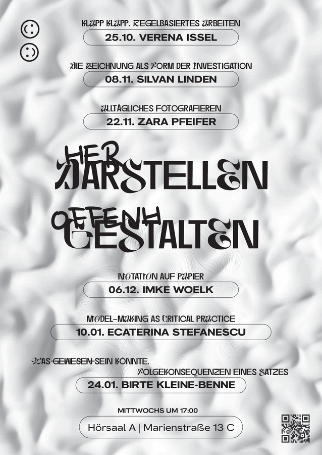 Ausgangspunkt dieses multiperspektivischen Formats ist die Überzeugung, dass unsere visuellen Techniken, Apparate und Systeme insofern politisch sind, als sie in Zeichnungen, Texten, Bildern und Modellen Sichtweisen (Lebens- und Denkweisen) darstellen, aber auch herstellen; sie sind insofern politisch, als sie sichtbar und zugleich unsichtbar machen. In der Pluralität der Beiträge und Übungen können wir diese Sichtweisen erproben und als partiell wahrnehmen, um Architektur als offenes Feld situierten Wissens zu verstehen - im Gegensatz zu einer fixierten Disziplin, die ein Set neutralisierter/universalisierter Techniken vermittelt.