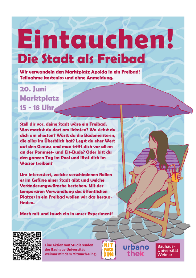 Uns interessiert, welche verschiedenen Rollen es im Gefüge einer Stadt gibt und welche Veränderungswünsche bestehen. Mit der temporären Verwandlung des öffentlichen Platzes in ein Freibad wollen wir das herausfinden.
