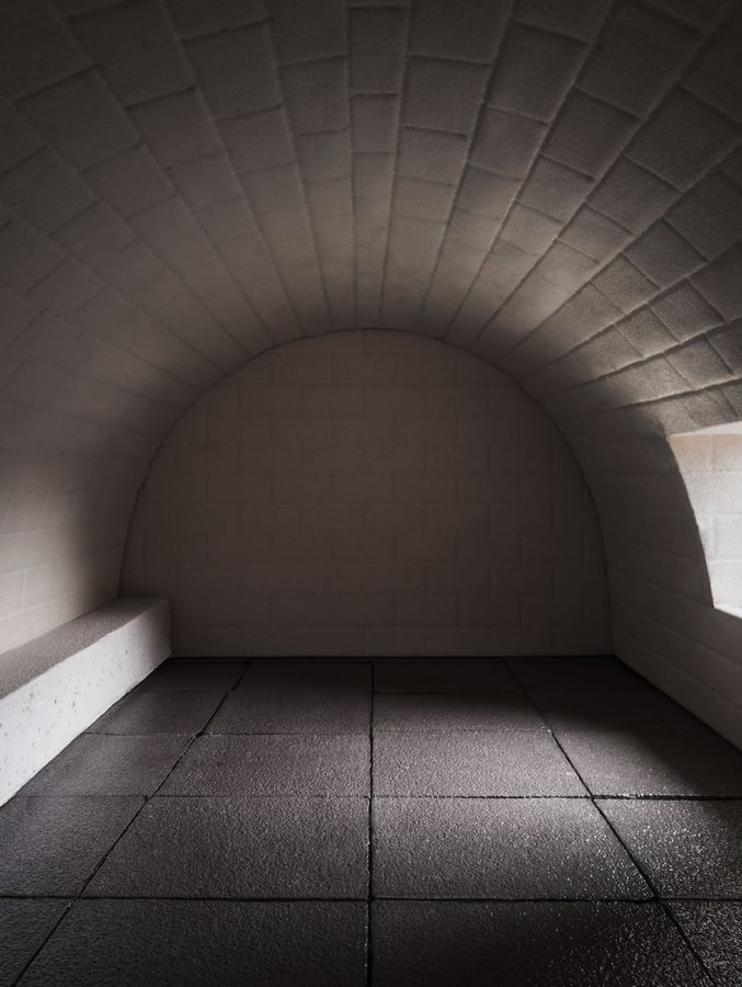»Im niedersächsischen Bordenau wird mittels Rückbau eines baufälligen Dachstuhls der denkmalgeschützte Zick-Zack-Ofen der »Alten Ziegelei« freigelegt. Die zeitgemäße Aufstockung durch ein Landbad nähert sich räumlich und atmosphärisch dem Ziegelofen an und fügt Bestand und Neubau zur Gesamtskulptur« , so Chadde. »Intentioniert war die Arbeit als architektonisches Prisma auf das Ziegelhandwerk und dessen Erzeugnisse.«