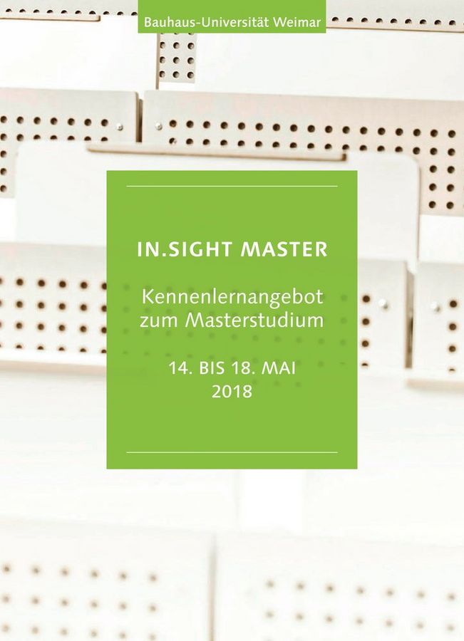 Wer den ersten Studienabschluss geschafft hat, steht nach der Entscheidung für ein weiterführendes Studium nicht selten vor einer großen Auswahl an Studienmöglichkeiten. Am besten wäre, man könnte das potenzielle neue Studium einfach ausprobieren – vom 14. bis 18. haben Bachelor-Absolventen und -Studierende im Rahmen des Kennenlernangebots »In.Sight Master« an der Bauhaus-Universität Weimar die Gelegenheit dazu.
