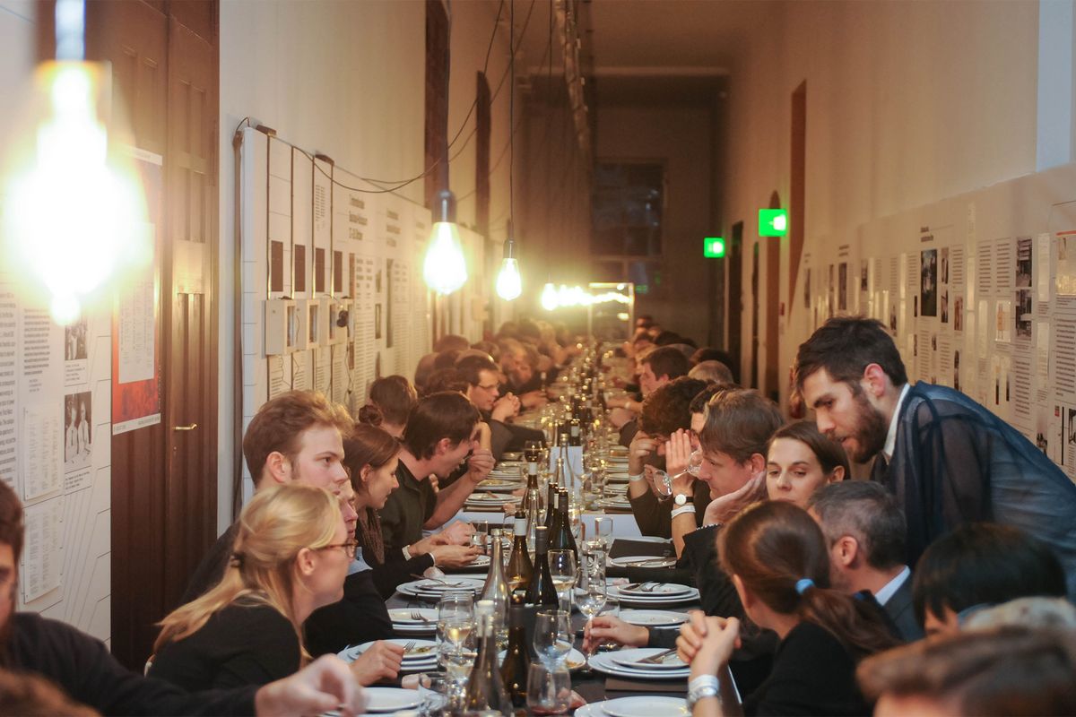 Am Freitag verwandelte sich das erste Obergeschoss durch eine 40 Meter lange Tafel, an der zum Performance Dinner des in London beheimateten Künstlerduos Cooking Sections 180 Gäste Platz nahmen. Neben dem Bauhaus-Botschafter sowie Schirmherrn des diesjährigen Kolloquiums Wolfgang Tiefensee, Thüringer Minister für Wirtschaft und Wissenschaft, speisten an diesem Abend dort Redner, Gäste, Professoren und Studierende gemeinsam. Unter dem Titel Climavore reagierte das Menü auf die »neuen« Jahreszeiten wie Dürre, Wasserverschmutzung und Flut, um so in einer globalen Landschaft einen Bedeutungswandel der Agrarproduktion anzuregen.