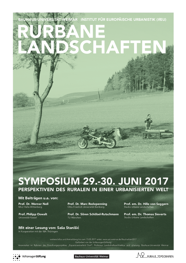 Das Symposium wird veranstaltet vom Institut für Europäische Urbanistik an der Bauhaus-Universität Weimar. Es findet statt im Rahmen des Forschungsprojektes »Experimentierfeld Dorf« der Professur Landschaftsarchitektur und -planung, gefördert von der VolkswagenStiftung.