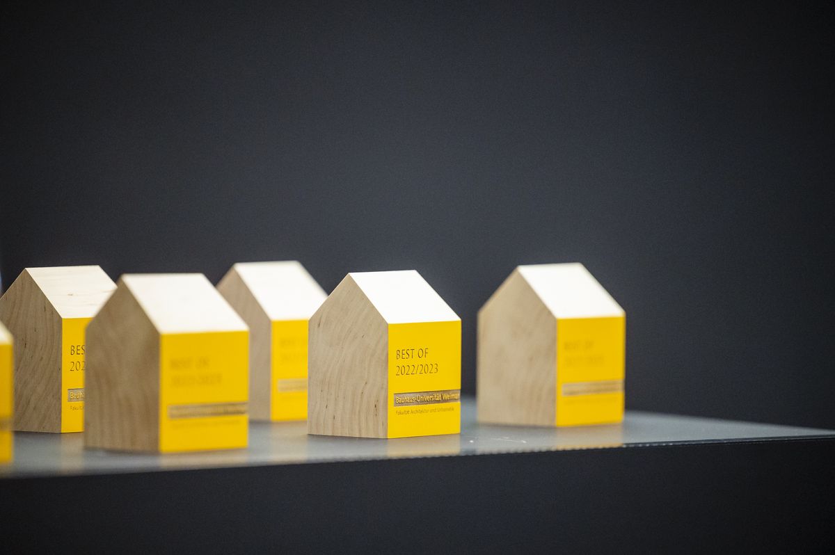 Die Auswahl der prämierten Arbeiten hat eine Jury vorgenommen, welcher in diesem Jahr Dr. Cécile Cuny (École d’Urbanisme de Paris der Université Gustave Eiffel, Paris & Gastdozentin am Institut für Europäische Urbanistik, Bauhaus-Universität Weimar), Thomas Wittenberg (Wittenberg Architekten, Weimar & Architektenkammer Thüringen, Erfurt) und Jun.-Prof. Christina Köchling (Juniorprofessur Bauentwurfslehre, Weimar & Felgendreher Olfs Köchling Architekten Berlin) angehörten. Vergeben wurden je ein erster und ein zweiter Preis in den Kategorien Entwurf bzw. Forschung sowie neun Anerkennungen.