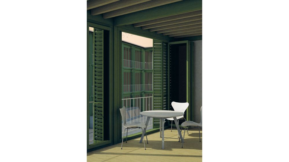 Durch die Stellung des großen Baukörpers entstehen, für die europäische Stadt typische, klar gefasste Räume - eine Gasse, eine Ladenstraße und ein lateraler Platz, der einen ruhigen Gegenpol zum belebten Frauenplan bietet. Der historische Platz erhält eine neue Rückwand, die den Fokus auf Goethes Wohnhaus unterstreicht. Entlang der Fassade des Hauses sind kleinteilige Raumeinheiten angeordnet. Diese vermitteln mit ihrem vertrauten Maßstab zwischen der mittelalterlichen Stadt und dem neuen Haus hin zu den großen Räumen im Inneren. Die gutbürgerliche Atmosphäre des Weimarer Stadtkerns schreibt sich in der Markthalle fort, die mit ihren unterirdischen Gewölben an herrschaftliche Vorratsspeicher oder das Schatzkammerhafte eines Weinkellers erinnert. Die Wohnungen setzen sich zusammen aus ortstypisch gekammerten Zimmern entlang der Fassade und je einem Wintergartenzimmer zu einem großen Hof, das als Entrée und Wohnküche die zeitgenössischen Bedürfnisse an Repräsentation und Gemeinschaft erfüllt.
