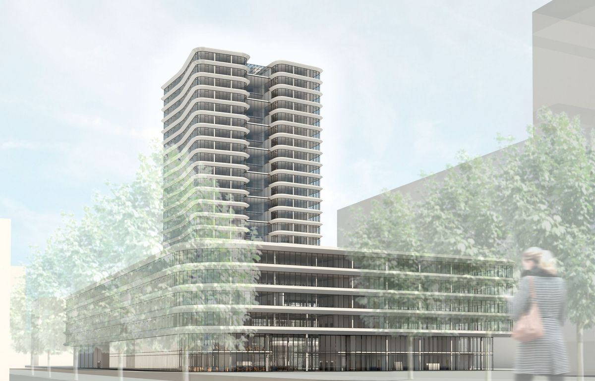 Den ersten Preis erhielt Johann Göhler mit einem Ensemble aus flachem Riegel und gut proportioniertem Hochhaus, das sich durch vielfältige Bezüge zum öffentlichen Raum und eine stringente innere Logik auszeichnet. Zur Pressemitteilung mit den weiteren Preisträgern kommen Sie hier.
