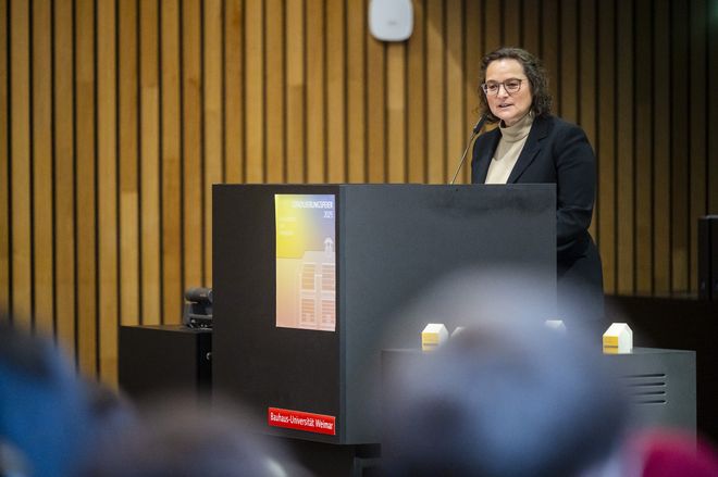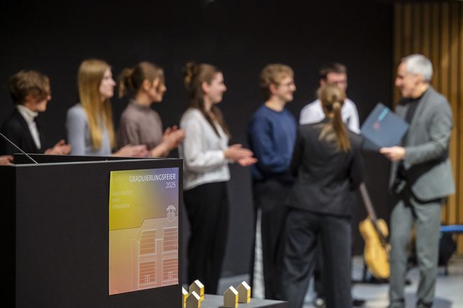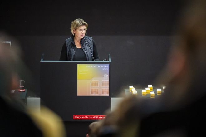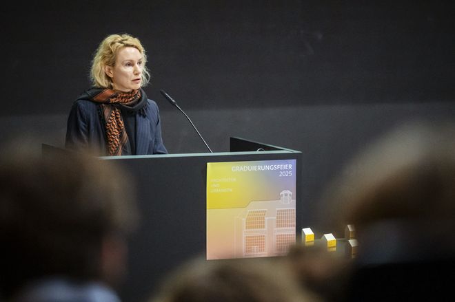 Nach der Begrüßung durch die Studiendekanin Prof. Dr.-Ing. Mona Mahall sowie Grußworten durch Vertreterinnen der Architektenkammer (Ines Jauck) sowie der SRL (Ines Klinke) richteten die Studiengangsleitungen ihre würdigenden Worte an die Absolvent*innen und übergaben die Zeugnisse. Die Studiengangsbesten aller sieben an der Fakultät angebotenen Studiengänge - Bachelor Architektur, Master Architektur, Bachelor Urbanistik, Master Urbanistik, Master European Urban Studies, Master Integrated Urban Development and Design und Master MediaArchitecture - wurden gesondert ausgezeichnet.