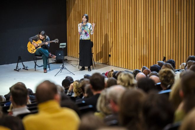 Mit persönlichen Worten bereicherte Alumnus Bálint Kémeny die Veranstaltung. Musikalisch rahmten Liljana Cavarretta und Celine Scholten von der Hochschule für Musik die Veranstaltung.