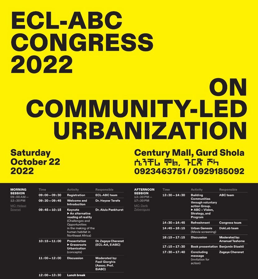 This year Congress, which was organized jointly by ECL-AA (EiABC -AAU) and ABC (Association for Building Communities), aims to explore alternative models in guiding rapid urbanization in North-East Africa. It particularly focuses on exploring the culture of community (communal living) in Ethiopia/Africa as a rich resource in the making of a human habitat that guarantees stability and resilience. It explores a community-led model called Grassroots Urbanization (GRU) as an alternative package to the usual Infrastructure-led Urbanization model – hence, an attempt to address the economic and social challenge at its roots. Accordingly, the congress broughttogether community leaders, academics, professionals, and decision-makers to deliberate on the concept.