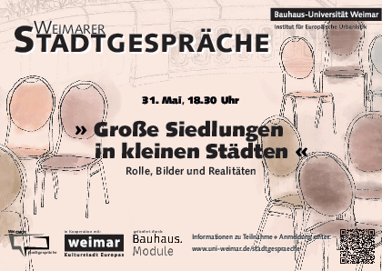 Wer an Großsiedlungen der 1950er bis 1980er Jahre denkt, hat zumeist Bilder aus Großstädten im Kopf. Image, markante Beispiele, unser Wissen sowie unsere Assoziationen mit diesem Siedlungstyp speisen sich überwiegend aus großstädtischen Kontexten. Demgegenüber befasst sich das 2. Weimarer Stadtgespräch mit dem differenzierten Phänomen von Großsiedlungen in deutschen Klein- und Mittelstädten: Von welchen Trends und Herausforderungen sind diese Siedlungen geprägt? Wie werden sie vor Ort wahrgenommen und in welchem Verhältnis stehen Bilder und Realitäten? Wie steht es konkret um die Weimarer Siedlungen? Lassen sich die in letzter Zeit in anderen Städten beobachteten zunehmenden Entmischungstendenzen dieser Siedlungen trotz Modernisierung und Betreuung auch hier beobachten? Wie unterscheiden sich die einzelnen Siedlungen diesbezüglich, und von welchen Faktoren hängt das ab? Welche Potentiale bieten diese Siedlungen, und welche Mechanismen und städtebaulich-stadtplanerischen Ansätze stehen für ihre Weiterentwicklung bereit?