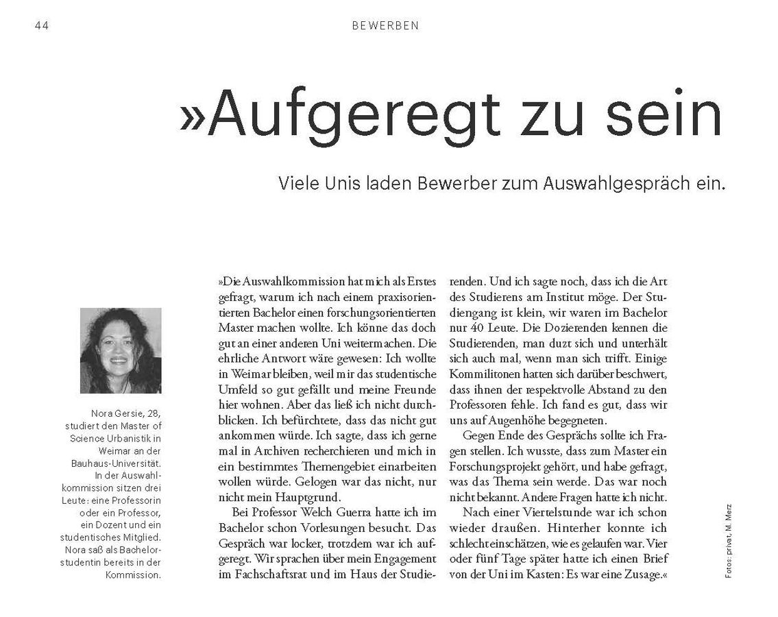 Zeitungsartikel über Auswahlgespräche, in "Die Zeit", Ausgabe vom Februar 2020.