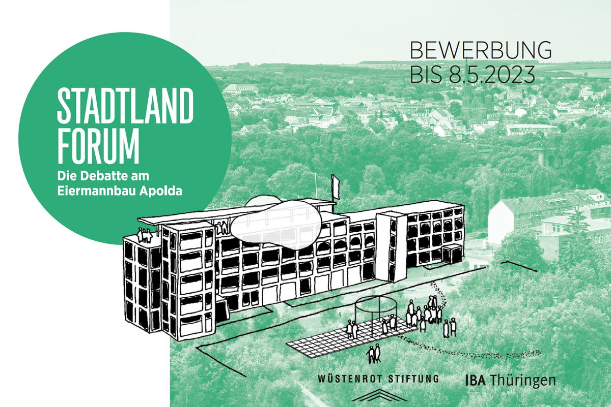 Die IBA Thüringen lädt in Kooperation mit der Wüstenrot Stiftung zum großen »StadtLand Forum – Die Debatte zur IBA Abschlusspräsentation 2023« am Eiermannbau Apolda ein. Im Zeitraum Juni bis Oktober 2023 widmen sich fünf mehrtägige Foren jeweils einem thematischen Schwerpunkt und bringen Projektakteur*innen der IBA Thüringen und der Wüstenrot Stiftung mit weiteren Expert*innen, Initiativen, Studierenden, Hochschulpartner*innen und Vertreter*innen aus Verwaltung und Politik zusammen. Gemeinsam wird das Wissen, die Ideen und praktischen Erfahrungen aus dem elfjährigen IBA Prozess und den Projekten der Wüstenrot Stiftung geteilt, diskutiert, weiterentwickelt und Positionen zur Zukunft der ländlichen Räume ausgehandelt. Die Foren sind Plattform und Lernort in einem, sie bieten Raum für zufällige Begegnungen und eine besondere StadtLand Erfahrung an einem außergewöhnlichen Ort. Das räumliche und atmosphärische Setting für das StadtLand Forum wird vom Kollektiv raumlabor auf der Freifläche am Eiermannbau realisiert.