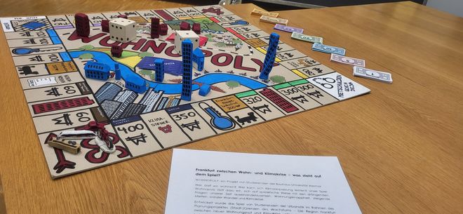Ein Schwerpunkt Tabea Latochas Arbeit liegt auf der angewandt-kritischen Wohnungsforschung und Wissenschaftskommunikation. So kuratierte sie die partizipative Ausstellung „Alle Tage Wohnungsfrage. Vom Privatisieren, Sanieren und Protestieren“ (18.06.2025 – 01.02.2026) mit Kolleg*innen des Historischen Museums Frankfurt. Die Ausstellung zeigt die Entwicklung von drei Frankfurter Siedlungen, die Privatisierung, energetische Sanierung und Protest erfahren haben. Sie stellt eine Verbindung zwischen forschungshistorischen Quellen und gegenwärtige Beiträge von sogenannten Stadtlaborant*innen her. Diese sind Bewohner*innen, Kita-Kinder, oder betroffene Mieter*innen. Der Hessische Rundfunk betont in seinem Kulturprogramm, selten sei eine Ausstellung so klar, so politisch und zugleich so unterhaltsam gewesen – ein Echo darauf, wie pointiert hier Forschung, Museumskommunikation und gegenwärtige Konflikte um die Wohnungsfrage zusammengebracht werden. Auch Urbanistik-Studierende der Bauhaus-Universität Weimar haben ein Beitrag in der Ausstellung: das WOHNOPOLY, „Lieblingsobjekt“ von J. Zwilling in ihrer H-Soz-u-Kult Rezession, regt spielerisch zum Nachdenken über Wohn- und Klimafragen an.