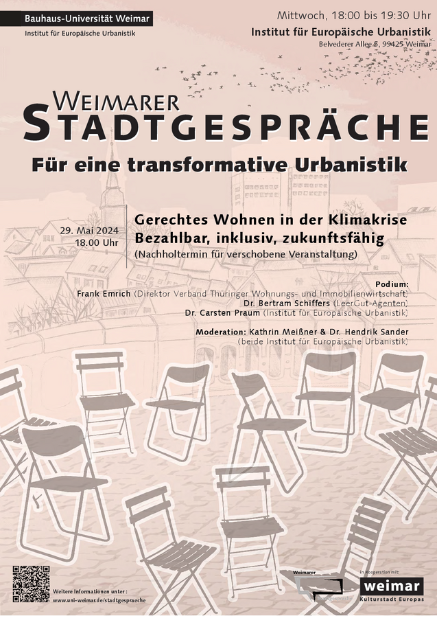 Weitere Informationen: https://www.uni-weimar.de/de/architektur-und-urbanistik/institute/ifeu/forschung/forschungsaktivitaeten/weimarer-stadtgespraeche/