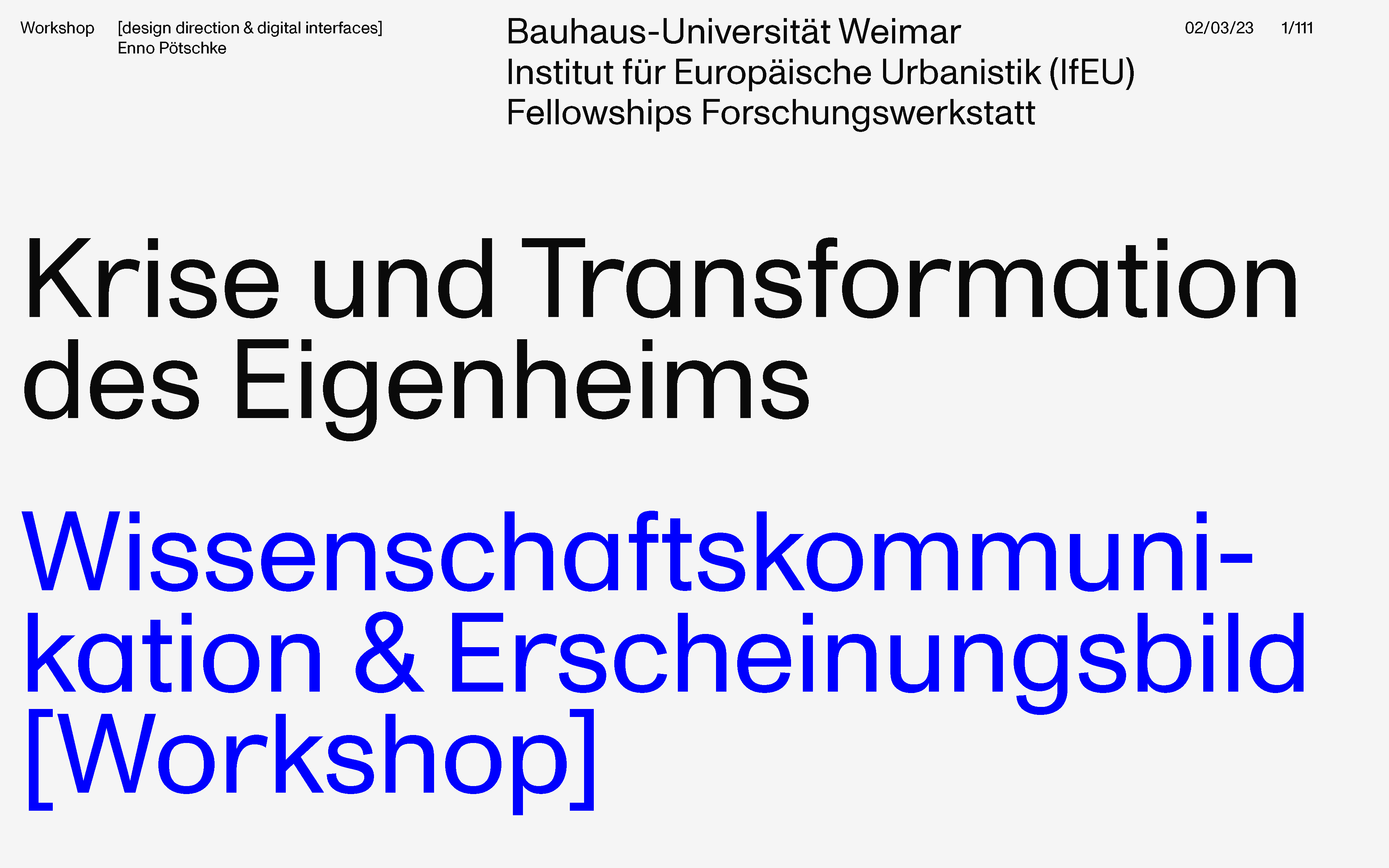 Am Eigenheim kristallisieren sich soziale, ökologische und architektonisch-planerische Krisen. Diese Krisenhaftigkeit birgt enorme Transformationspotentiale. Aus sozialwissenschaftlicher, stadtplanerischer und architektonischer Perspektive werden sich wandelnde Wohnwünsche und -praktiken, architektonische und stadtplanerische Bedingungen der Eigenheimproduktion sowie gesellschaftliche Konsequenzen des Wohn- und Grundeigentums untersucht. Ziel ist es, anhand experimenteller qualitativer empirischer Methoden Handlungsoptionen im Sinne einer sozialen und ökologischen Transformation zu entwickeln.