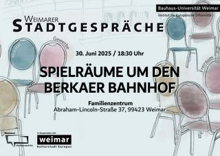 Der Auftakt fand am 30. Juni 2025, um 18:30 im Familienzentrum in der Abraham-Lincoln-Straße 37 statt. Im Rahmen des Abends wurden die Ergebnisse des studentischen Projekts »Routine« präsentiert, die im Sommersemester unter der Betreuung der Professur Stadt Raum Entwerfen an der Bauhaus-Universität Weimar entstanden sind. Die studentischen Beiträge eröffnen neue Blicke auf Potenziale und Herausforderungen im Stadtraum rund um den Berkaer Bahnhof. Daran anschließend diskutieren auf dem Podium: Jun.-Prof. Dorothee Rummel (Junior-Professur Stadt Raum Entwerfen) und Bernward Fechtel (Stadtarchitekt der Stadt Weimar). Die Moderation übernahm Dr. Elodie Vittu, Referentin am Institut für Europäische Urbanistik.