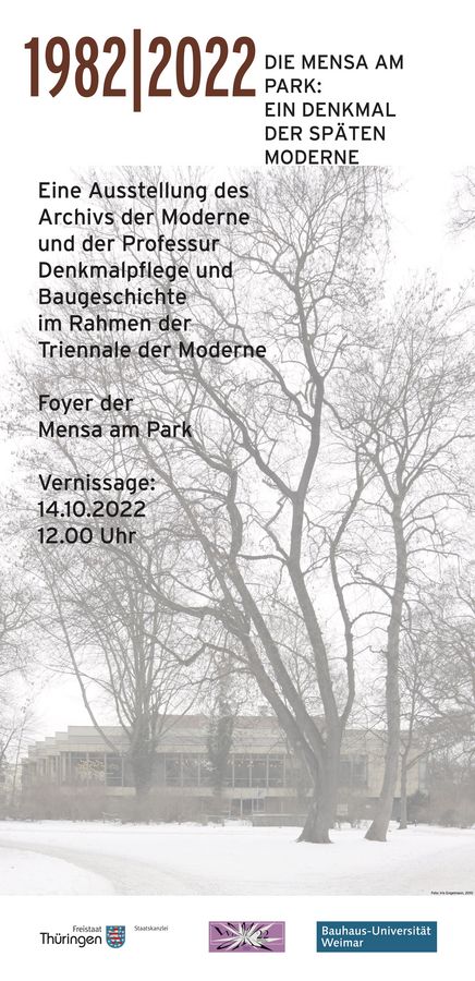 Im Rahmen der Triennale der Moderne zeigen das Archiv der Moderne und die Professur Denkmalpflege und Baugeschichte eine Ausstellung zur Geschichte der Mensa am Park unter dem Titel »Mensa am Park. Ein Denkmal der späten Moderne«.