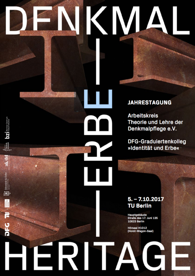 Vom 5.-7. Oktober findet die Jahrestagung des Arbeitskreises Theorie und Lehre der Denkmalpflege e.V. und des DFG-Graduiertenkolleg "Identität und Erbe" an der TU Berlin statt.