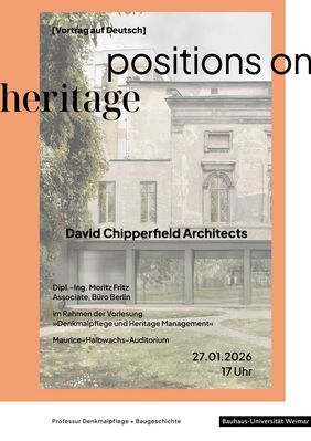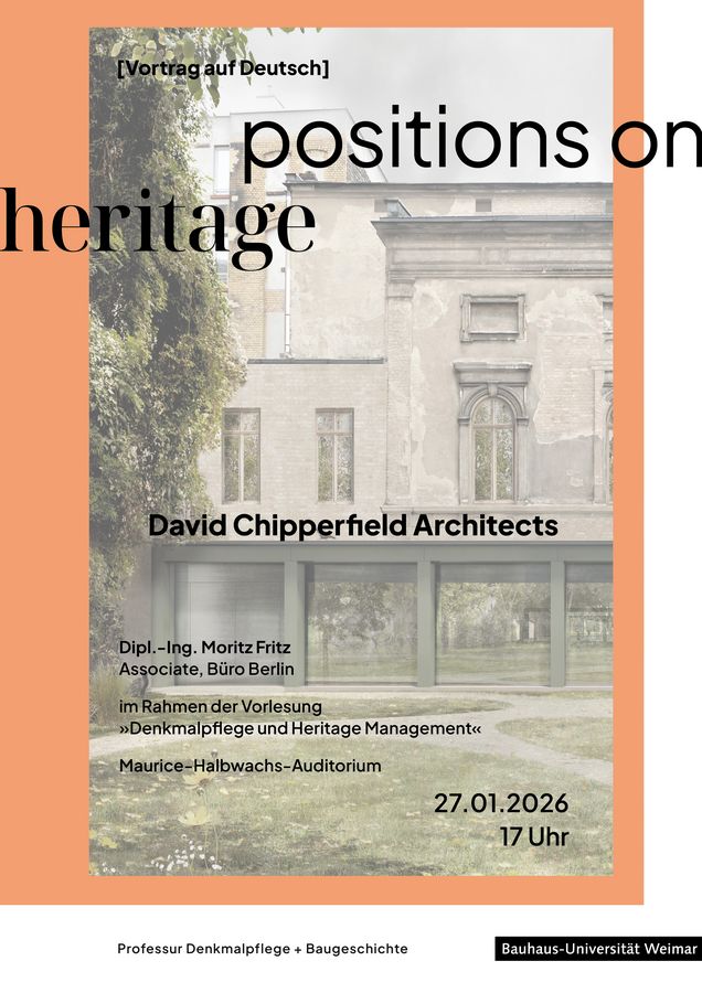 Am 27. Januar um 17 Uhr lädt die Professur zum Vortrag Positions on Heritage von Dipl.-Ing. Moritz Fritz ein.