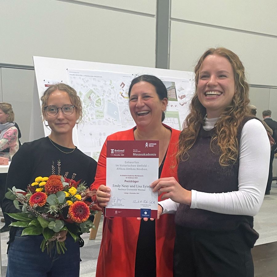 Bei der 13. Messeakademie im Rahmen der denkmal 2024 unter dem Thema "Entwerfen im historischen Umfeld – Altbau.Umbau.Neubau“ konnten sich Studierende der Bauhaus-Universität über eine Auszeichnung freuen.