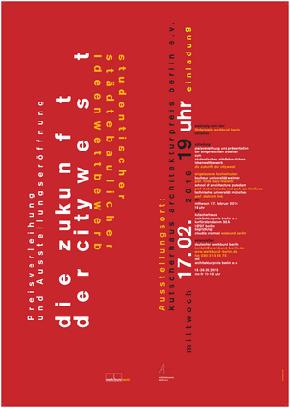 Am Mittwoch, den 17. Februar 2016, findet in Berlin die Preisverleihung zum studentischen Wettbewerb "Die Zukunft der City West" im Kutscherhaus am Kurfürstendamm statt. An dem Wettbewerb sind neben der Bauhaus-Universität Weimar, die School of Architecture Postdam und die Technische Universität München beteiligt. Der Wettbewerb wurde initiiert vom Werkbund Berlin, der in diesem Zusammenhang erstmalig den "Förderpreis Werkund Berlin" verleiht.