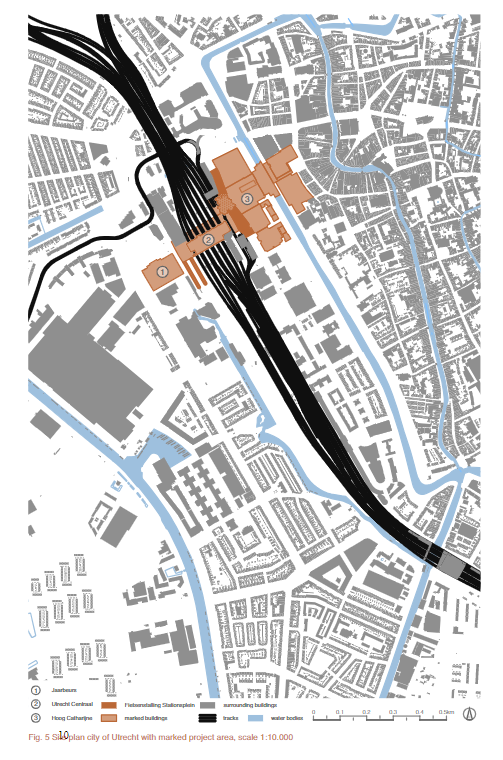The bicycle parking facility improved Utrecht, both in its structure and infrastructure. Despite local and management challenges, the needs of the population and city and the supply/demand ratio justified high expenditure, initiative and effort concerning the facility. The parking garage is spacious, safe and well organized, its usage quick and convenient. It works because of the effective surrounding infrastructure, which in turn is enhanced thanks to the effectiveness of the facility. The project can be used as a positive example for implementation of large scale sustainable projects in urban context.