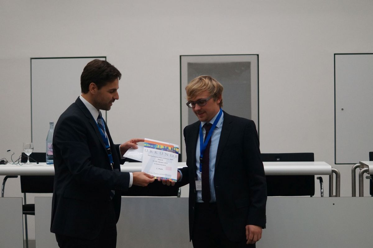In seinem 3 minütigen Kurzvortrag befasste er sich mit einem Mythos der Bauphysik, den so genannten „atmenden Wänden“. Dabei stellte er zunächst „Forschungsergebnisse“ vor, die den endgültigen Beweis für atmende Wände zeigen. Er visualisierte dabei als Erster das Atmen der Wände, musst im Zuge seiner Präsentation letztendlich aber feststellen, dass es sich doch nur um einen Optimierungsvorgang zum Ermitteln der optimale Dämmstoffstärke eines Wohngebäudes handelte. Mit seinem gleichzeitig wissenschaftlichen und amüsanten Vortrag konnte Herr Lichtenheld die Jury sowie das komplette Auditorium überzeugen.