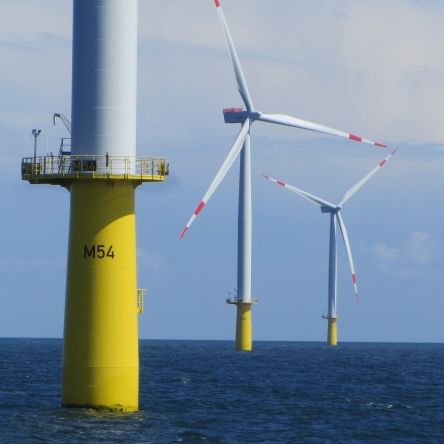 aus Offshore-Windenergieanlagen (OWEA). Im Vergleich zum Land (onshore) treten auf dem Meer (offshore) stetig hohe Windgeschwindigkeiten auf, sodass hohe Erträge zu erwarten sind. Gleichzeitig erfordern schwierige Randbedingungen – wie große Wassertiefen von bis zu 50 m, starke Wind- und Wellenbelastungen oder weite Entfernungen von der Küste – eine sehr sorgfältige Planung.