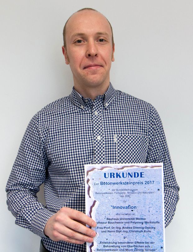 Innerhalb eines AiF Projekts wurde an der Professur Bauchemie und Polymere Werkstoffe ein neuartiges zementgebundenes Bodensystem mit gestalteter Oberfläche entwickelt. Im Vergleich zu herkömmlichen Technologien besteht die Innovation dieses Bodenbelags in einem geringeren Herstellungs- und Kostenaufwand bei einer vergleichbaren Ästhetik.