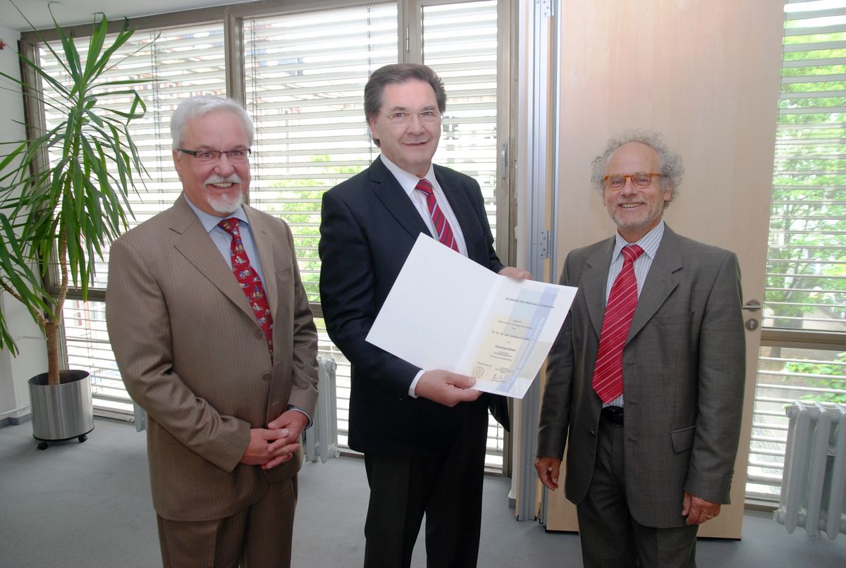 Am 31. Mai 2012 erhielt Dr. rer. nat. Gottfried Grünthal im Rahmen einer feierlichen Übergabe durch den Rektor Prof. Dr.-Ing. Karl Beucke seine Ernennungsurkunde zum Honorarprofessor an der Bauhaus-Universität Weimar. Ab dem kommenden Wintersemester 2012/2013 wird Dr. Grünthal mit dem Themengebiet „Erdbebengefährdungsanalyse“ die Lehre im englisch-sprachigen Masterstudiengang Natural Hazards and Risks in Structural Engineering an der Fakultät Bauingenieurwesen verstärken.