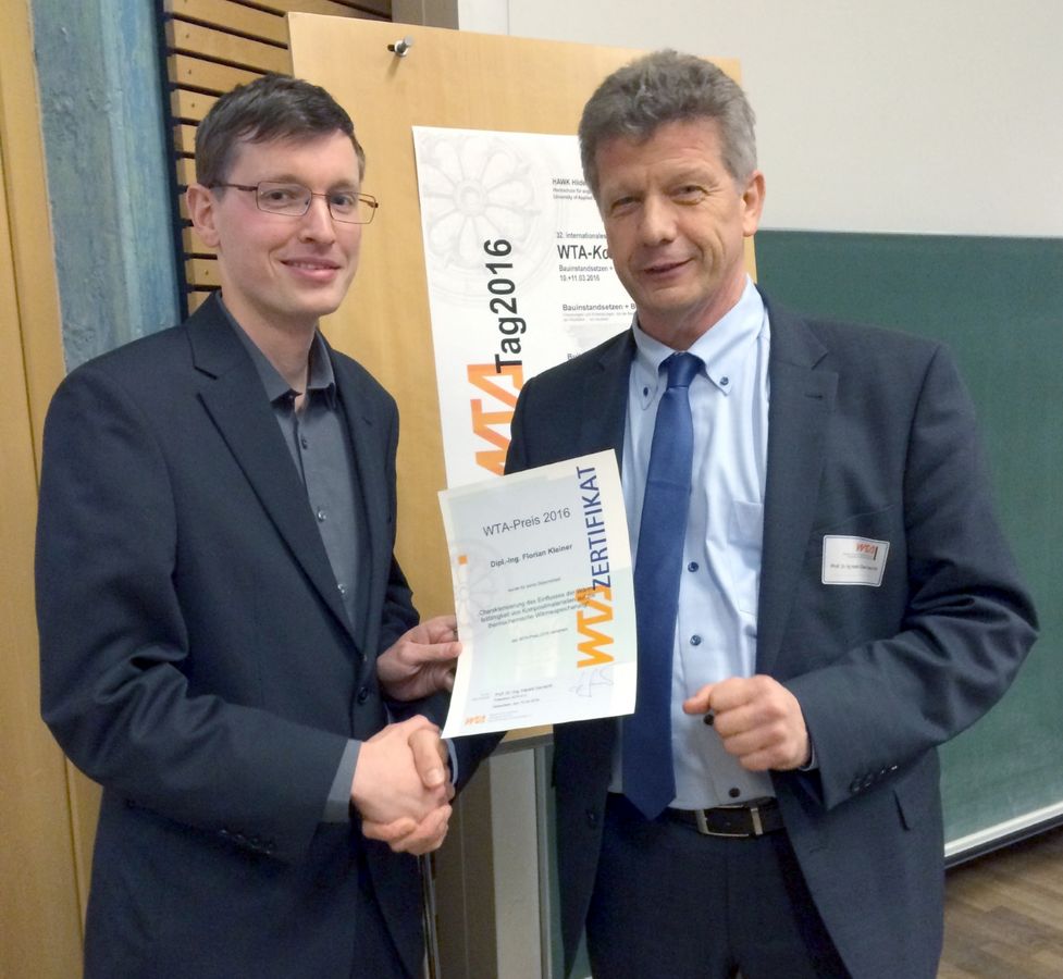 Herausragende Leistungen auf den Gebieten der Forschung und Praxis der Bauwerkserhaltung und Denkmalpflege werden von der WTA jährlich mit einer Preisverleihung gewürdigt. Die Verleihung des Preises wird im Rahmen des WTA-Tages durch den 1.Vorsitzenden der WTA, Prof. Garrecht auf Vorschlag einer Fachjury vorgenommen.