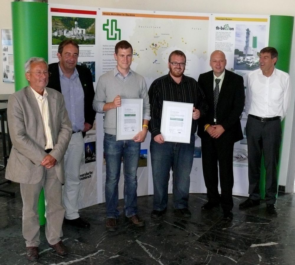 Thema der prämierten Masterarbeit von M.Sc. André Trümer war die „Verwendung von calcinierten Tonen als Hauptbestandteil im Zement“. M.Sc. Martin Reformat hat die „Bewertung von Mahlaggregaten im Hinblick auf die Leistungsfähigkeit der darin aufbereiteten Zementhauptbestandteile“ untersucht.