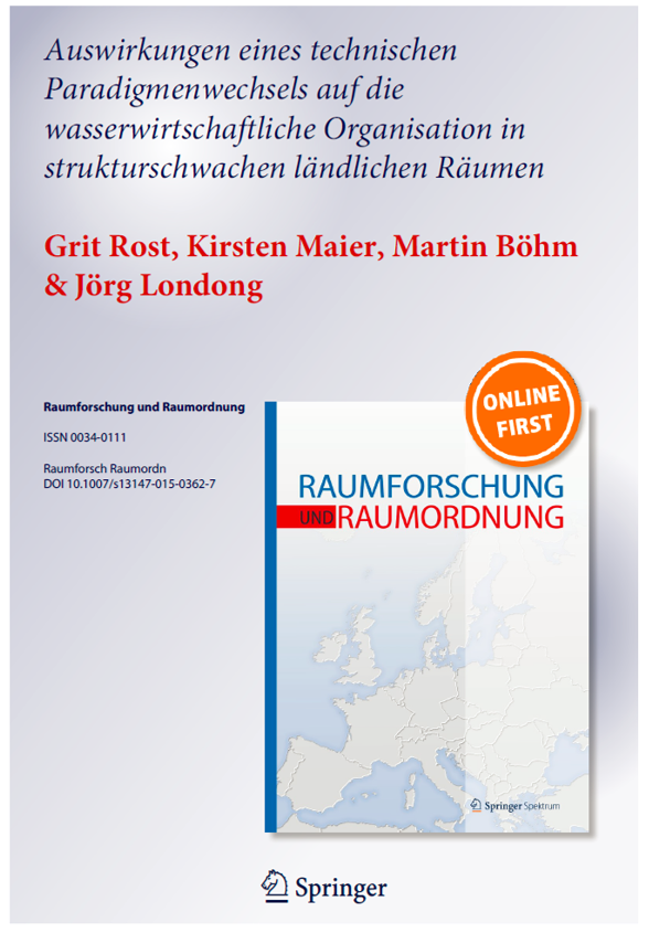 Unter dem Titel „Auswirkungen eines technischen Paradigmenwechsel auf die wasserwirtschaftliche Organisation in strukturschwachen ländlichen Räumen“ erschien im Oktober ein Beitrag der Bauhaus-Universität Weimarin der Zeitschrift „Raumforschung und Raumordnung“. In diesen Beitrag werden auch maßgeblich Ergebnisse des Projektes TWIST++ dargestellt.