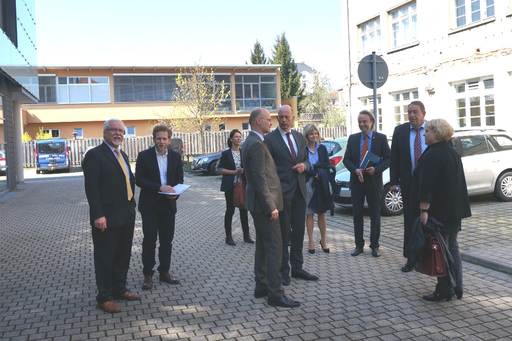 Im Rahmen seines Besuches am 23. April 2015 an der Bauhaus-Universität Weimar war der Thüringer Minister für Wirtschaft, Wissenschaft und Digitale Gesellschaft Wolfgang Tiefensee unter der Thematik "Austausch zu Forschung und Bauvorhaben" in der Coudraystraße zu Gast.