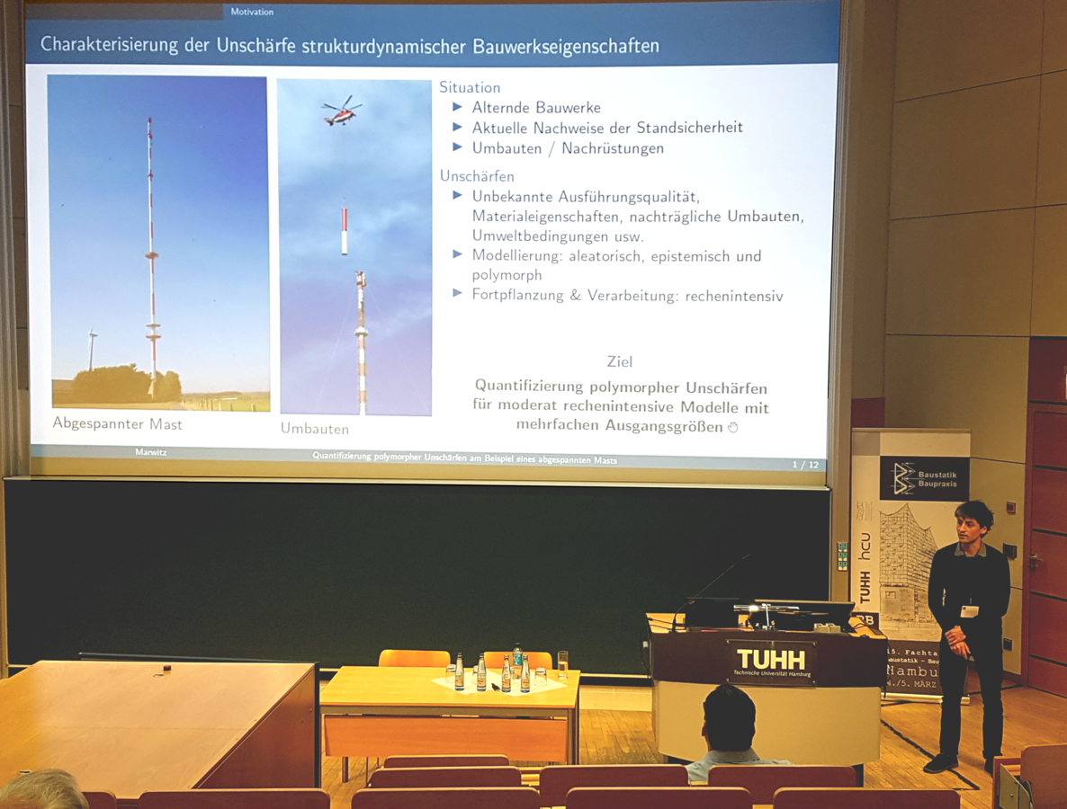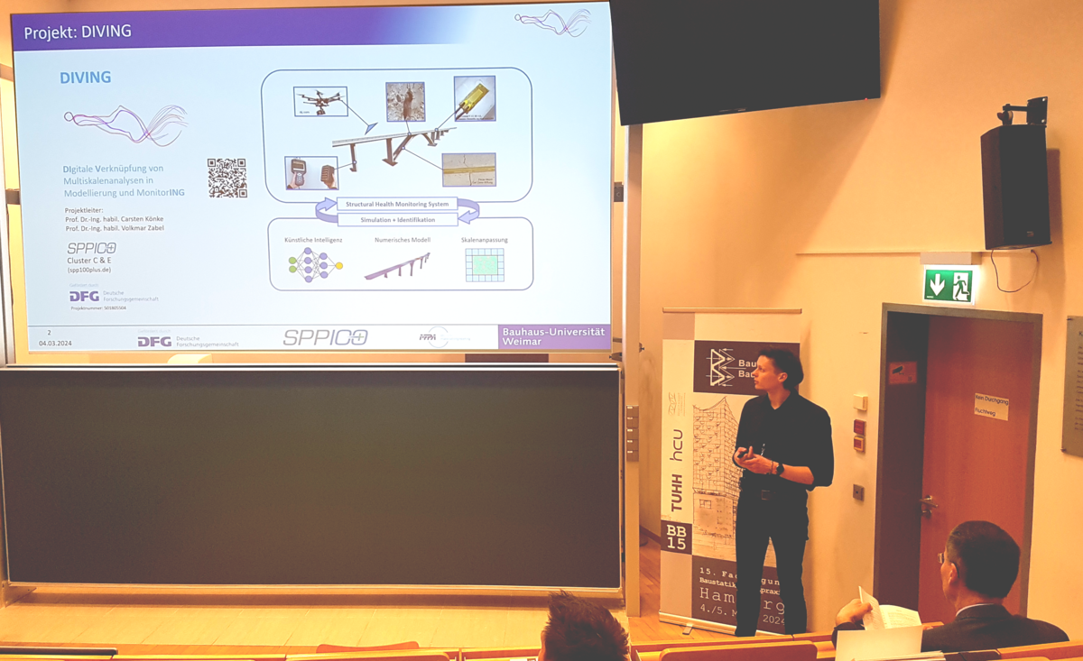 Aus dem ISM nahm die Professur Baustatik und Bauteilfestigkeit mit insgesamt 4 Beiträge an der Fachtagung teil. Ein Vortrag wurde im Minisymposium „Baudynamik“ und drei weiteren Vorträge wurden im von Prof. Dr.-Ing. habil. Carsten Könke geleiteten Minisymposium „Lebensdauer, Monitoring, digitaler Zwilling und BIM“ gehalten.