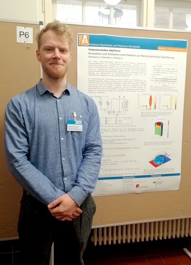 Mit einem Poster zur „Konzeption und Simulation eines Reaktors zur thermochemischen Energiespeicherung“ gab Herr Heitmann einen Einblick in ein aktuelles Forschungsthema an der Professur.